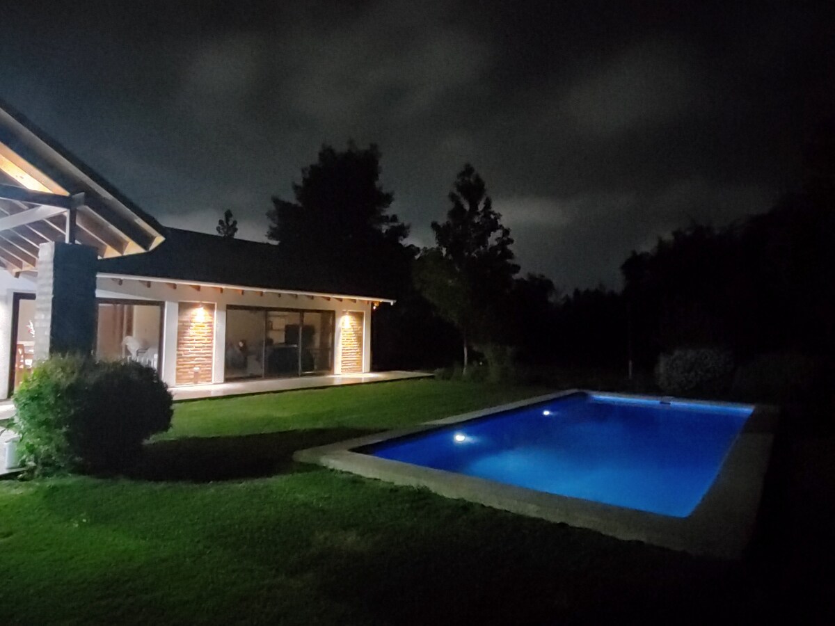 Putuskan hubungan daripada kebimbangan anda di ruang yang luas dan tenang ini. Anda boleh menikmati kawasan hijau, tempat yang selesa, serba lengkap, dan dengan penyaman udara. Anda juga boleh menggunakan balang, yang untuk kegunaan eksklusif bagi mereka yang menyewa tempat ini. Berhampiran, anda mempunyai tempat-tempat menarik seperti Monticello Casino, Vineyards (Sta Rita by Axis) Outdoor (La vacada, cantillana), muzium. Terletak 40 minit dari Santiago