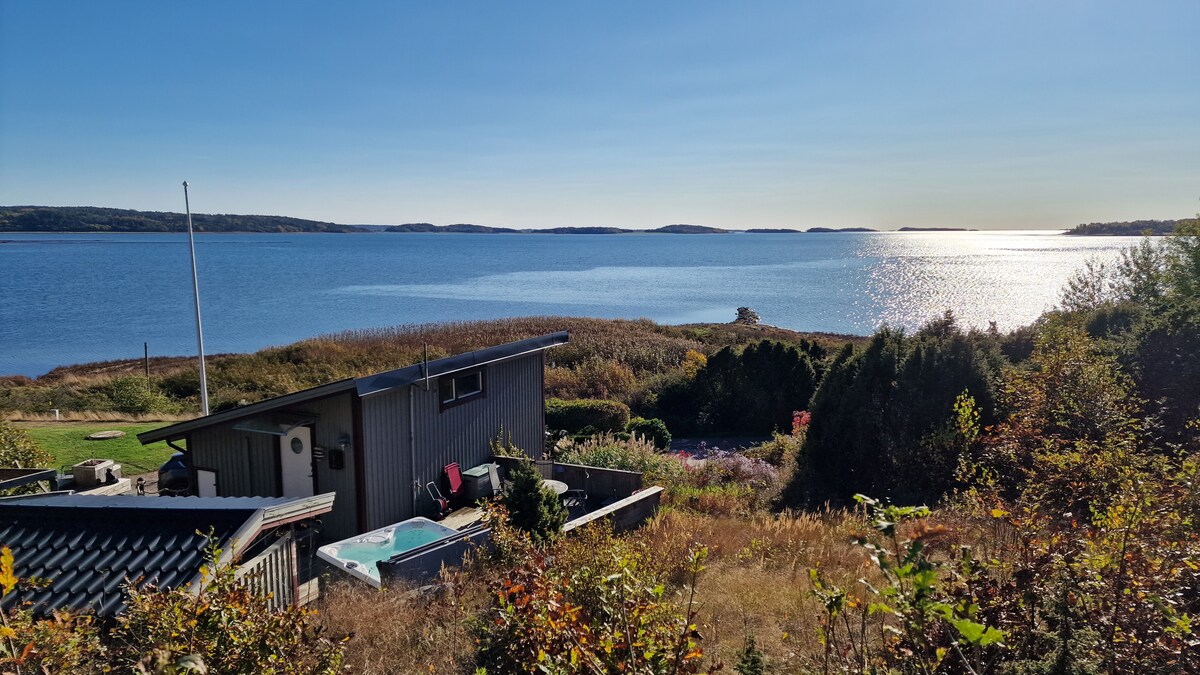 Pondok dengan pemandangan laut, sauna dan tab mandi air panas