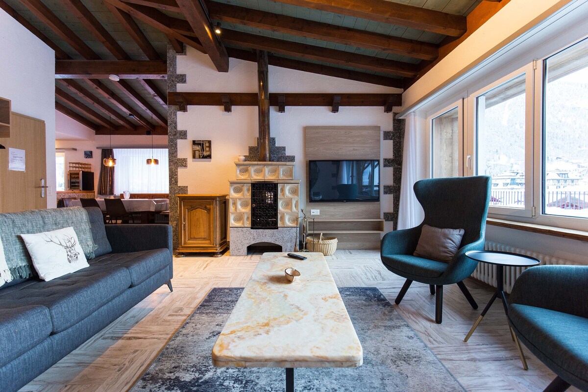 PEMANDANGAN GUNUNG YANG MENAKJUBKAN 🍀 PERSENDIRIAN: - 2 bilik tidur dengan PEMANDANGAN GUNUNG YANG MENAKJUBKAN, masing-masing dengan katil BoxSpring King-Seize 180 cm - Katil sofa 160 cm di ruang tamu dengan PEMANDANGAN GUNUNG YANG MENAKJUBKAN - Dapur yang serba lengkap, fondue, rempah ratus🫕 🌯, mesin basuh pinggan mangkuk, ketuhar, ketuhar gelombang mikro, dll. - Bilik mandi moden yang luas dengan 3 mod pancuran mandi - TV 65", HIGH-SPEEDinternet 🛜 BERKONGSI : - Teres teduh yang indah, taman permainan - Sauna Inframerah - Buku dan permainan papan 📚🧩 Sesuai untuk KELUARGA dan RAKAN ! 🌷👙🫧🩳🩱🚠🧗♀️🌞🍄⛷️☃️