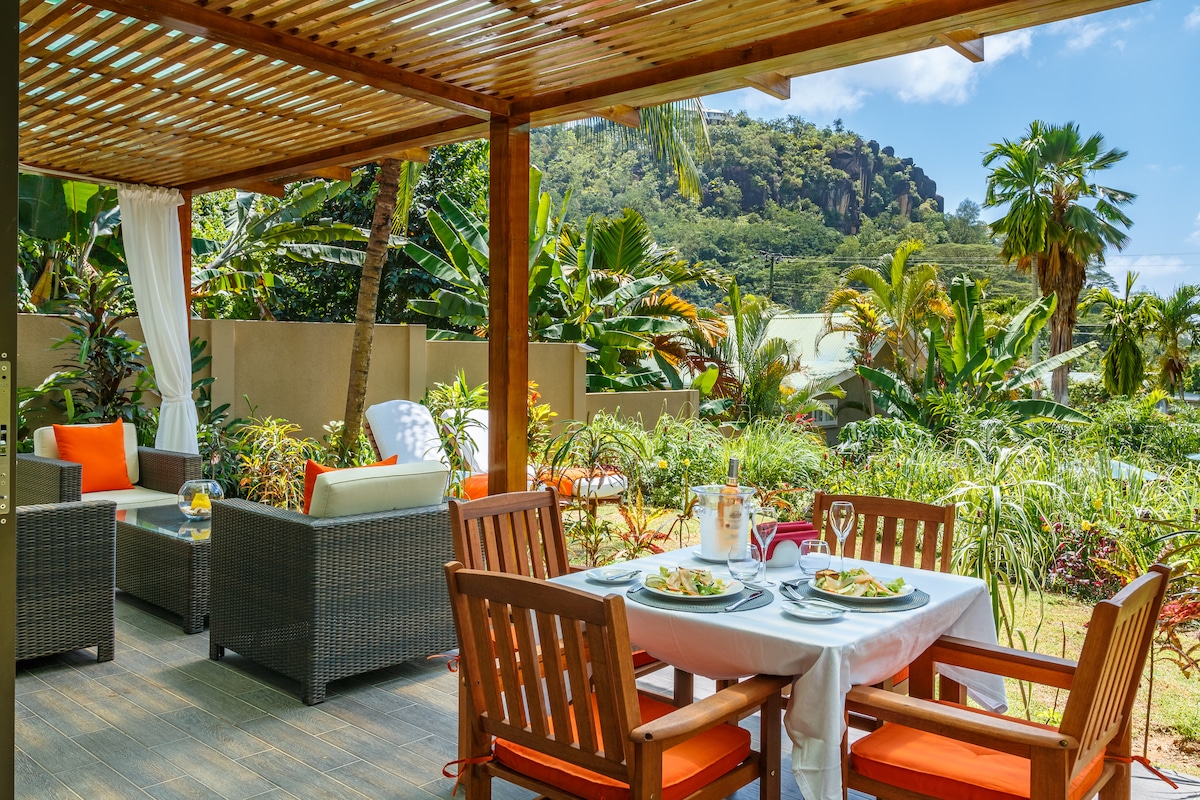 Bersantai di vila yang tenang dan mewah ini, yang terletak "Au Cap berhampiran Anse Royale". Pemandangan laut 180 ° boleh dilihat dari teres tertutup, 2 bilik tidur dengan bilik mandi en suite, dan ruang tamu. Nikmati 3 sofa luar yang selesa dan saksikan "paille en queue" yang indah terbang di sekitar . Dapatkan manfaat daripada air cond di setiap bilik, WiFi percuma, TV gergasi dan bar di ruang tamu, taman, spa, tempat letak kereta persendirian, dan keselamatan tambahan yang disediakan oleh penggera dan CCTV.