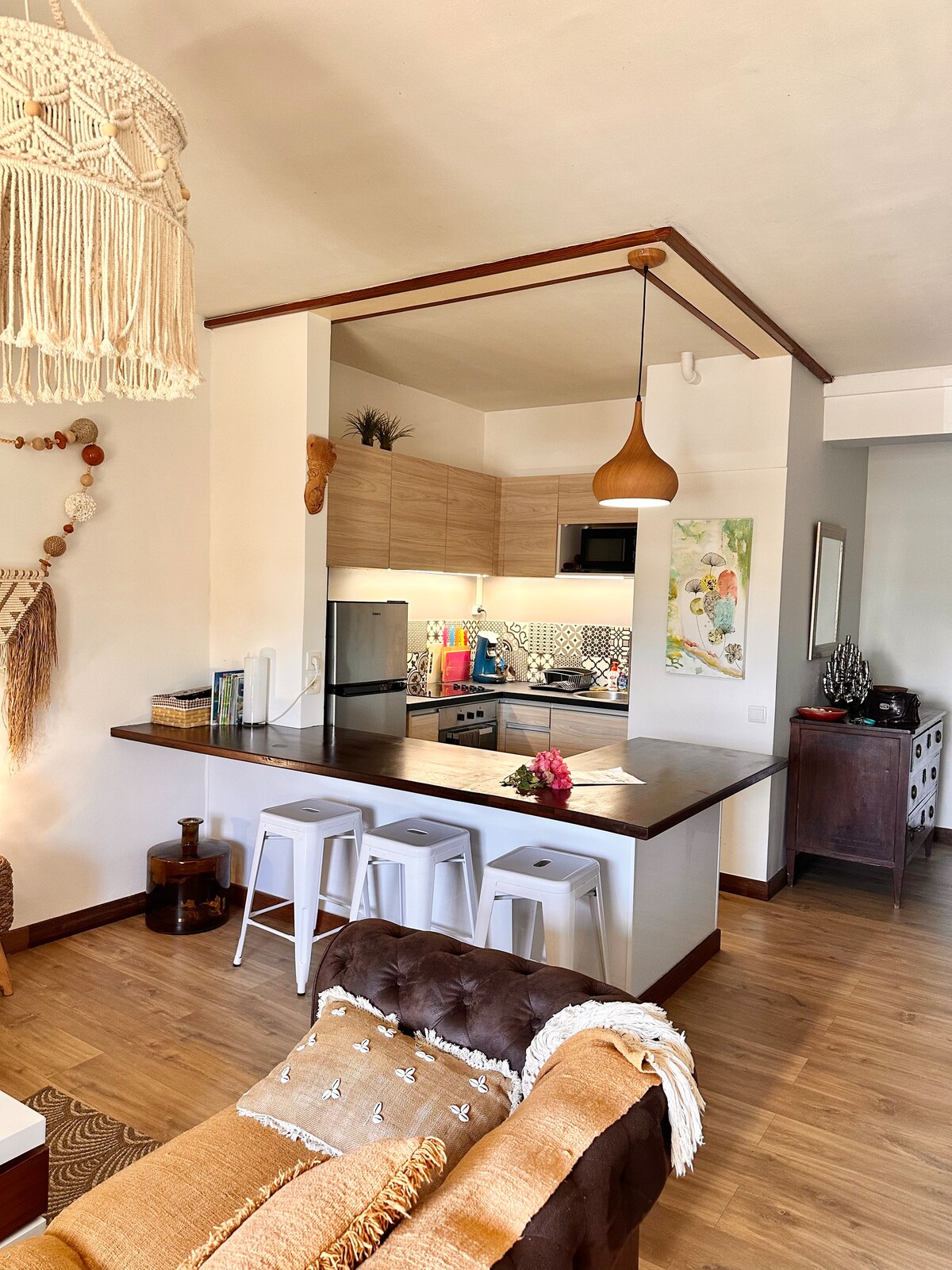 Terletak di bahagian atas Place des Cocotiers, dengan pemandangan gazebo dan laut, F2 yang menawan, selesa dan cerah ini telah diubahsuai sepenuhnya dengan semua keselesaan yang anda perlukan untuk penginapan anda. Anda akan berada di tengah-tengah pusat bandar untuk menikmati kedai-kedai, pasar atau muzium yang terletak berhampiran dengan pemandangan kiosk muzik Place des Cocotiers dan laut. Kawasan ini bagus dan tenang. Ia adalah 10 minit dari Lemon Bay atau Anse Vata
