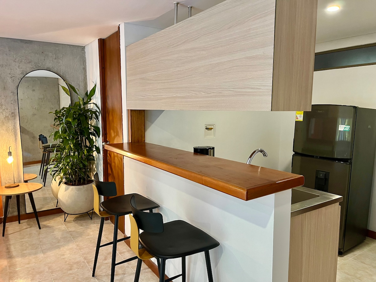 Suite berperabot lengkap seluas 28 m2, dengan penyaman udara dan dapur kecil. Terletak di salah satu kawasan terbaik di Medellin, di kejiranan yang sangat tenang berhampiran semua tempat menarik. Suite ini mempunyai pemandangan bandar dan gunung yang menakjubkan. Anda boleh menggunakan kawasan kerja bersama, gimnasium dan kopi menakjubkan yang menawarkan pelbagai jenis minuman berdasarkan kopi Colombia terbaik, anda boleh menikmati minuman anda di teres yang terletak di tingkat 2 bangunan.