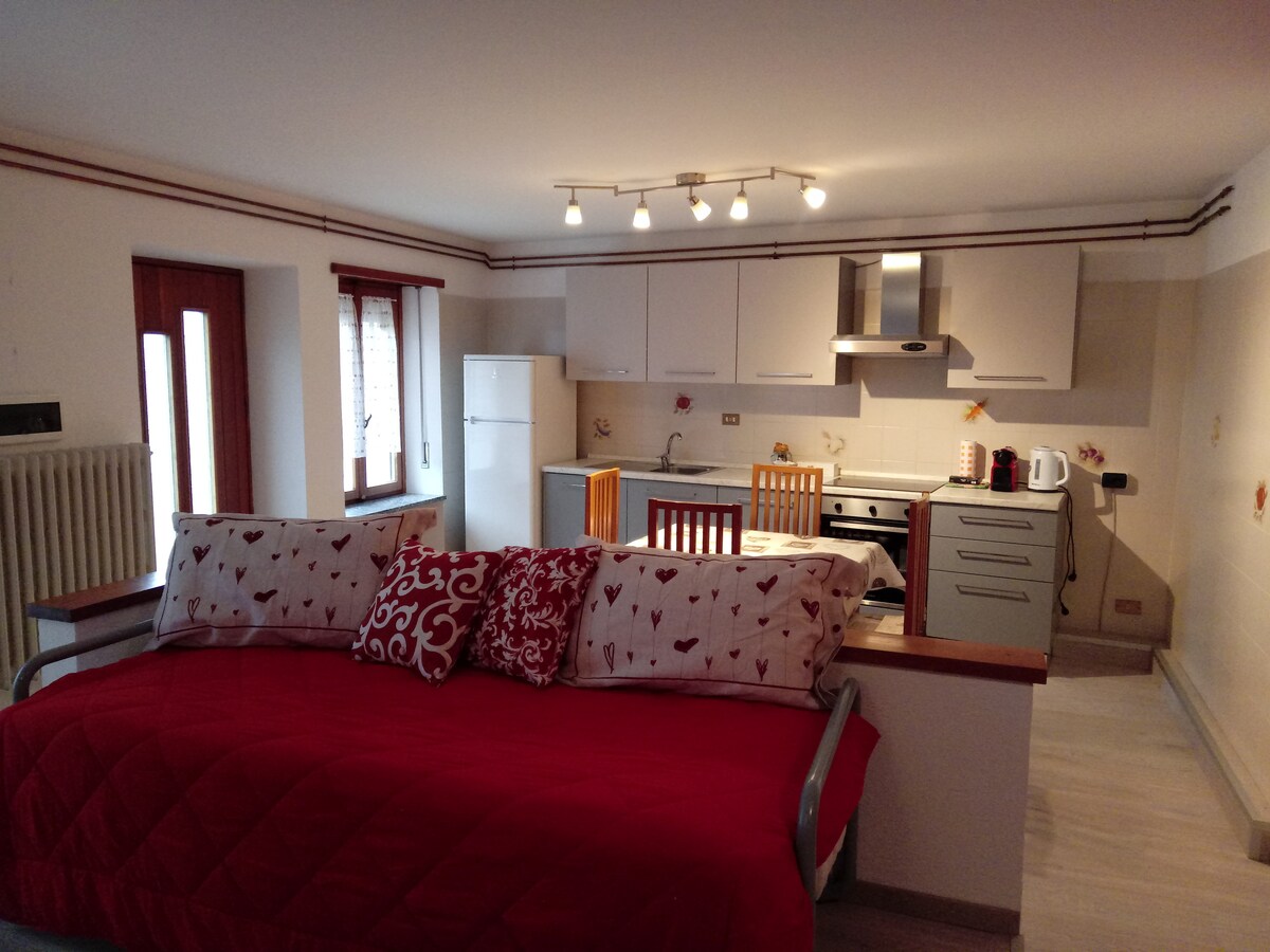 Selamat datang Pengembara! Apartmen 30 meter persegi, sesuai untuk bujang/pasangan, yang terletak di kawasan yang dikenali sebagai Pelan Fèlinaz, anda berada dalam jarak lima minit memandu dari kereta kabel ke Pila dan sepuluh minit dari pusat bersejarah Aosta. Berhampiran kemudahan: Bas, kedai runcit, kedai roti, bar, restoran pizza, pejabat pos, kedai tembakau, farmasi dan gereja dalam jarak 700 m.
