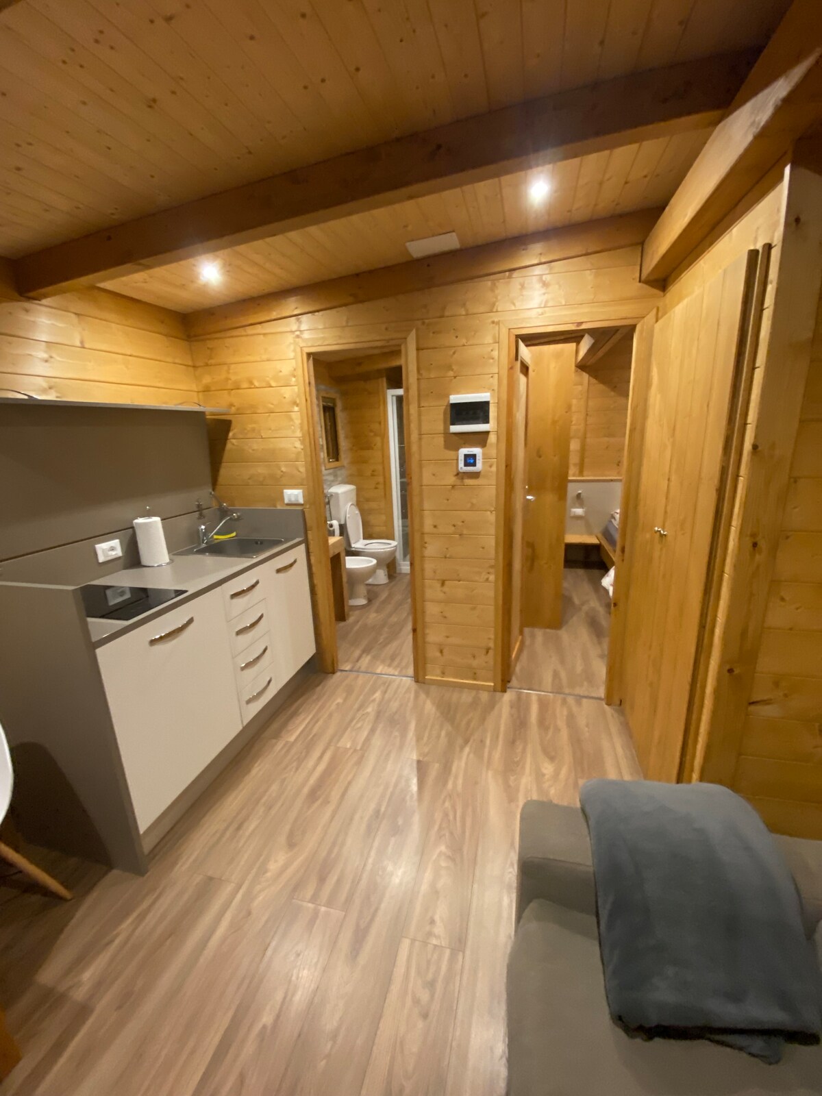 Jatuh cinta dengan landskap indah yang mengelilingi kotej ini. Rumah mudah alih yang lengkap dan bebas di tapak perkhemahan gunung yang tinggi. Tapak perkhemahan ini berhampiran kolam semula jadi kecil dan hutan semula jadi. Rumah ini mempunyai bilik mandi penuh (tiada bidet); kawasan dengan dapur kecil, katil sofa (gaya karavan) dengan segi empat sama dan meja kecil dengan bangku. Terdapat patio kecil di hadapan pintu masuk di mana anda boleh makan dan berehat.