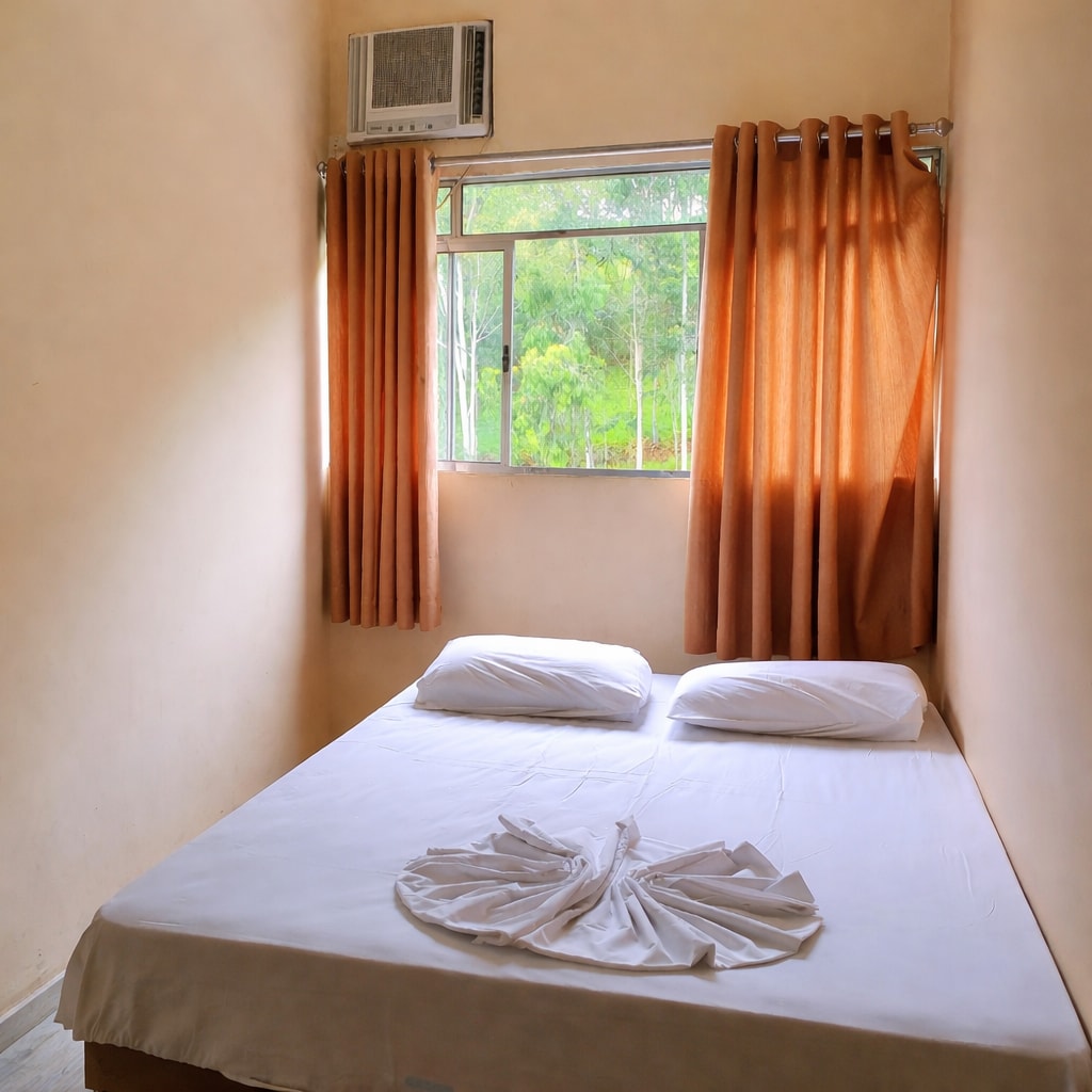 Quarto confortável e bem equipado, ideal para descanso em Aparecida. O espaço dispõe de 1 cama de casal, ar-condicionado, TV, banheiro privativo, roupa de cama limpa e amenidades de banho gratuitas. Ambiente acolhedor, funcional e silencioso, perfeito para casais, famílias ou peregrinos que buscam praticidade e conforto após um dia de passeios e visitas ao Santuário. Incluso café da manhã