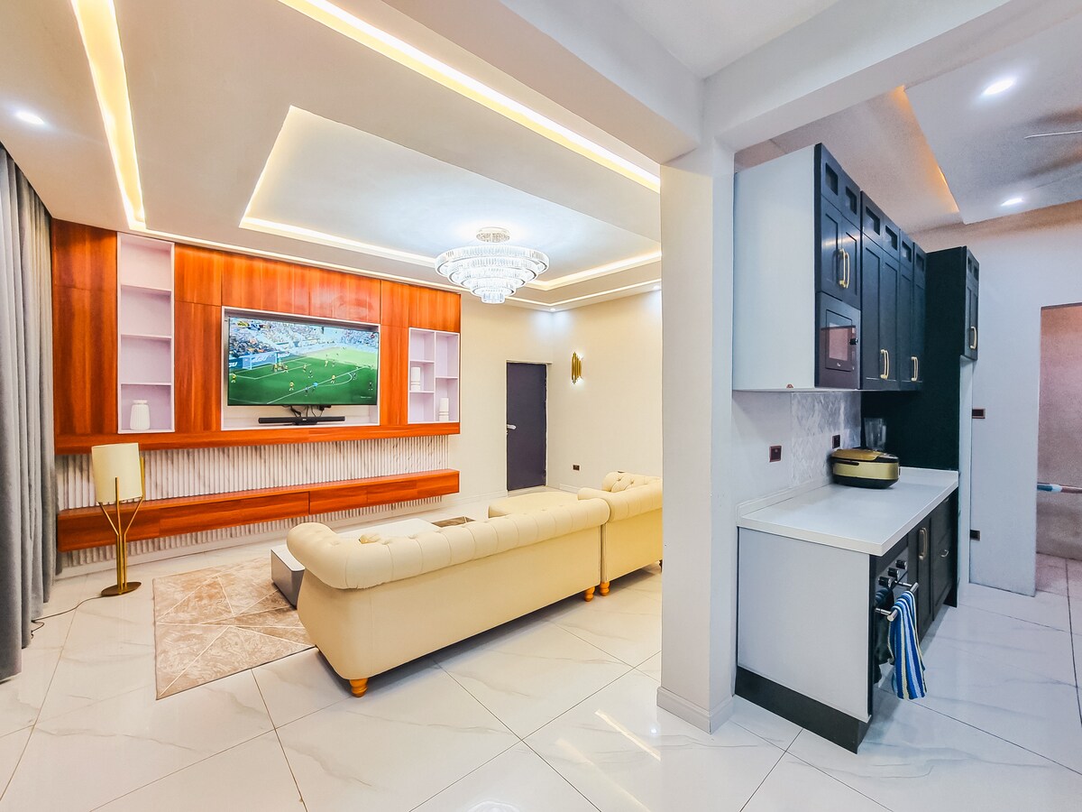Escape to our carefully curated 2-bedroom apartment, perfectly suited for families, friends, or solo travelers seeking tranquility. Nestled in a serene environment, this elegant space offers modern comforts and a reliable standby generator ensuring uninterrupted 24/7 power. Relax in style with spacious rooms, premium amenities, and peaceful surroundings—your ideal home away from home!