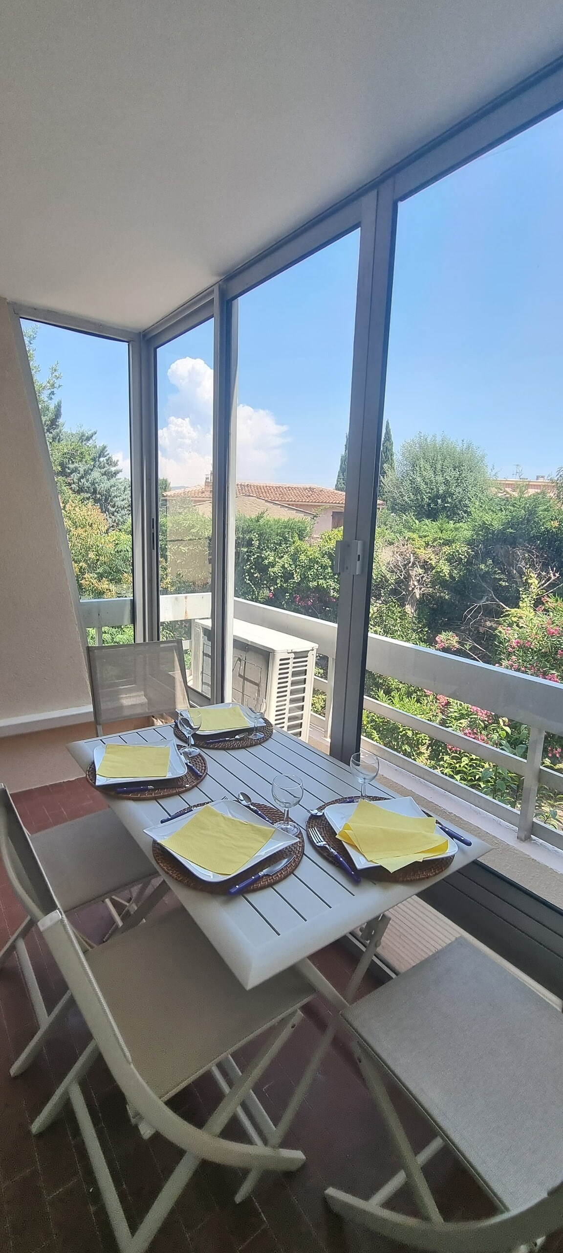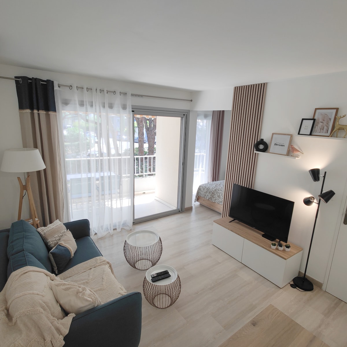 Lokasi yang ideal, semuanya berjalan kaki, pantai, pelabuhan dan kedai-kedai di kawasan berhampiran. Apartmen di tingkat 1 kediaman berhutan di selatan yang tenang menghadap lengkap (mesin basuh, penyaman udara, ketuhar, wifi, mesin kopi Tassimo, plancha...). Penginapan ini terdiri daripada bilik utama dengan dapur Amerika, keseluruhannya menghadap balkoni seluas 10m2. 'Kawasan tidur tertutup dengan 2 katil twin, ruang tamu ada sofa boleh tukar 2 tempat duduk. Bilik mandi. Kediaman selamat dengan tempat letak kereta.