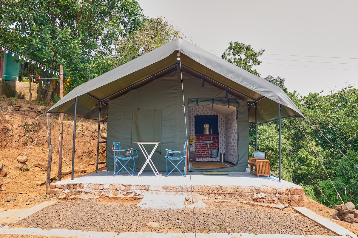 Nikmati suasana indah tempat romantik ini di alam semula jadi. Bangun dengan pemandangan Tasik Pawna yang menakjubkan di khemah mewah seluas 600 kaki persegi yang luas. Direka untuk pasangan, keluarga atau kumpulan kecil, khemah ini menggabungkan keselesaan moden dengan pesona perkhemahan mewah. Ciri-ciri termasuk pendingin hawa, katil bersaiz king, bilik mandi peribadi bersambung, dan pemandangan tasik yang tiada tandingannya. Diuruskan oleh The Villa Co.