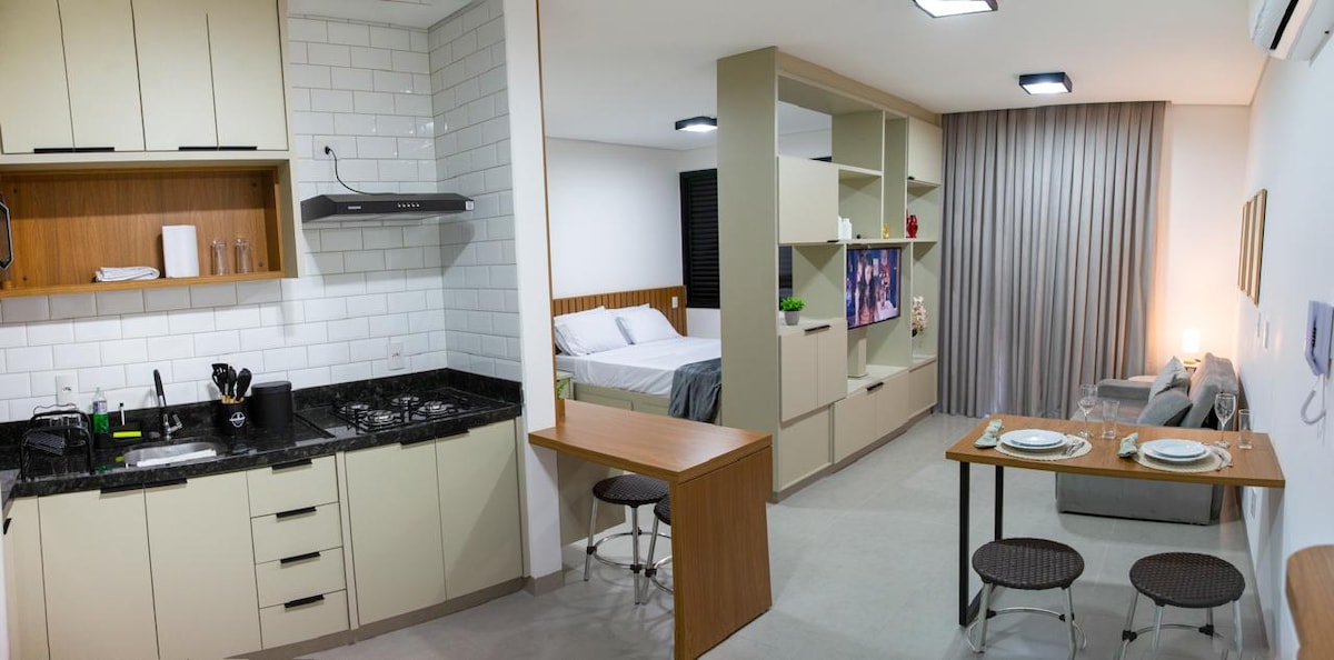 *Selesa dan kemudahan! Di lokasi terbaik di Uberlândia! Apartmen baru dengan reka bentuk moden, yang direka untuk menawarkan keselesaan sepenuhnya, yang direka daripada peralatan tempat tidur, meja dan linen mandi hingga ciri-ciri teknologi. Lokasi ini satu lagi perbezaan, 2km dari lapangan terbang bandar, menjadi sudut ideal anda untuk perniagaan, membeli-belah atau percutian.