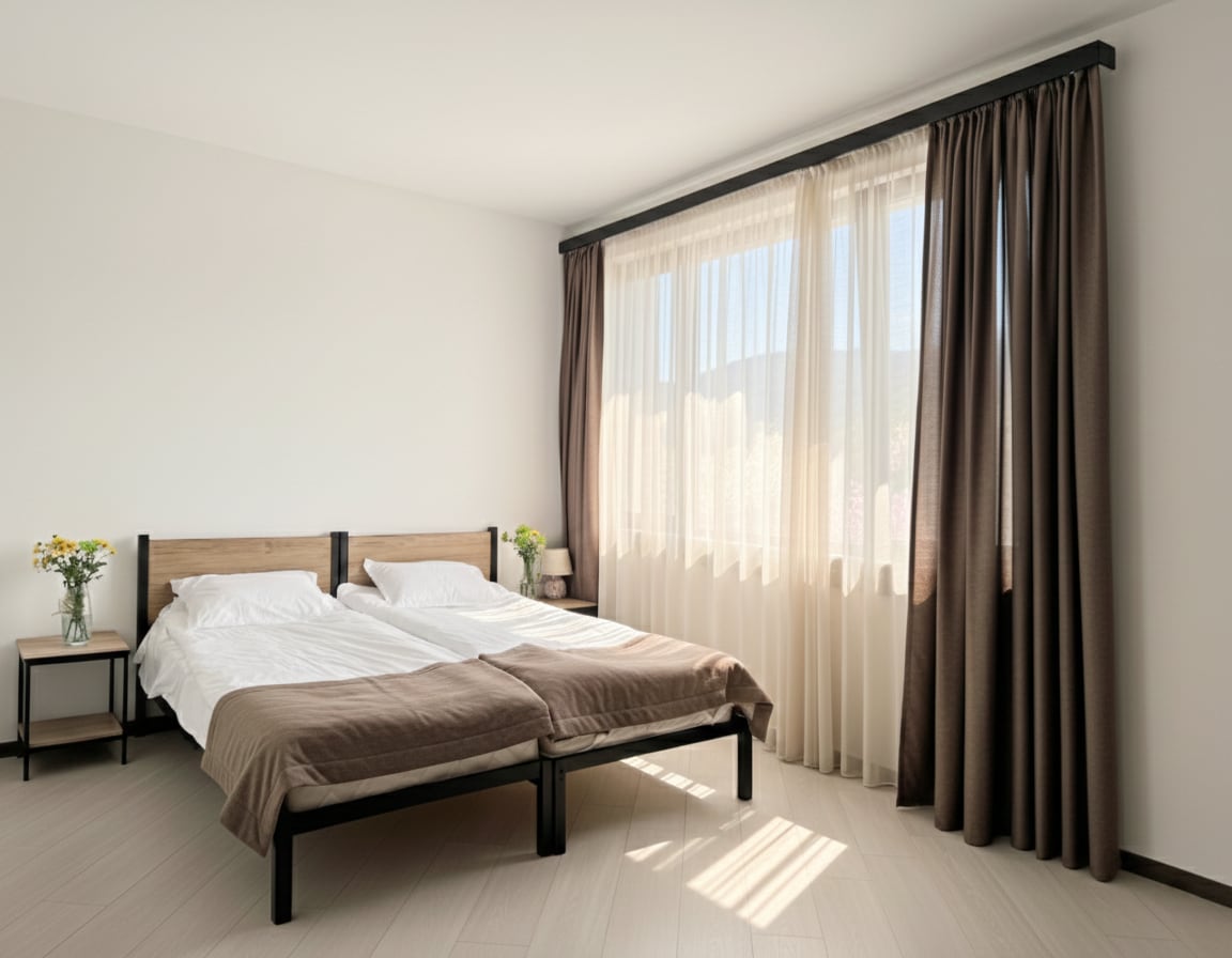 Bilik yang sangat bersih dan ringan di hotel. Semua bilik dilengkapi dengan sistem kawalan iklim. Bilik-bilik yang direka dengan bergaya sangat selesa dan selesa, dilengkapi dengan semua keperluan asas. Bilik ini untuk dua orang. Terdapat satu pilihan katil berasingan (keluarga) yang besar. Hotel ini tidak jauh dari kesibukan pusat bandar.
