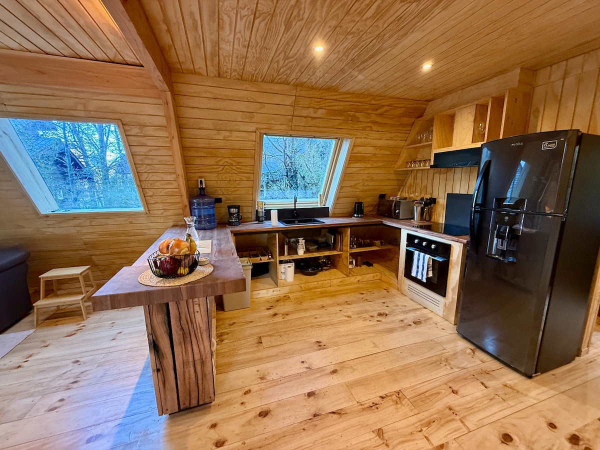 Kabin Samaya terletak di dalam hutan oak dan laurel, menawarkan dua bilik tidur dengan bilik mandi peribadi, dapur Amerika yang serba lengkap dan ruang tamu dengan dapur kayu yang memberikan suasana hangat Chile selatan. Di teres, nikmati balang kayu untuk 4 orang yang menghadap Gunung Berapi Llaima yang megah. Tempat perlindungan yang ideal untuk berehat di tengah-tengah alam semula jadi.