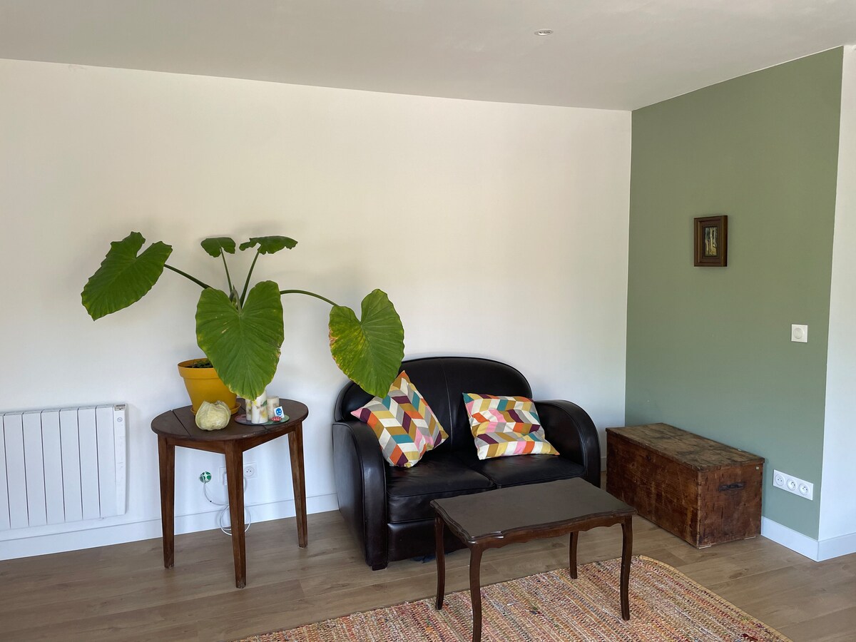 Studio bebas di tingkat bawah, baru-baru ini (2023) dengan bilik mandi dan tandas berasingan. Anda boleh menikmati taman berpagar seluas 500m2 dengan kerusi dek, kawasan teduh untuk makan di luar. Di sini, kami suka haiwan dan anda dialu-alukan dengan anjing, kucing, unta. Dilengkapi sepenuhnya dengan katil sebenar dengan tilam Bultex yang selesa dan dapur penuh dengan peti sejuk, induksi, pembuat kopi dan cerek. Cadar tilam dan tuala disediakan. Mesin basuh untuk € 5, termasuk detergen.