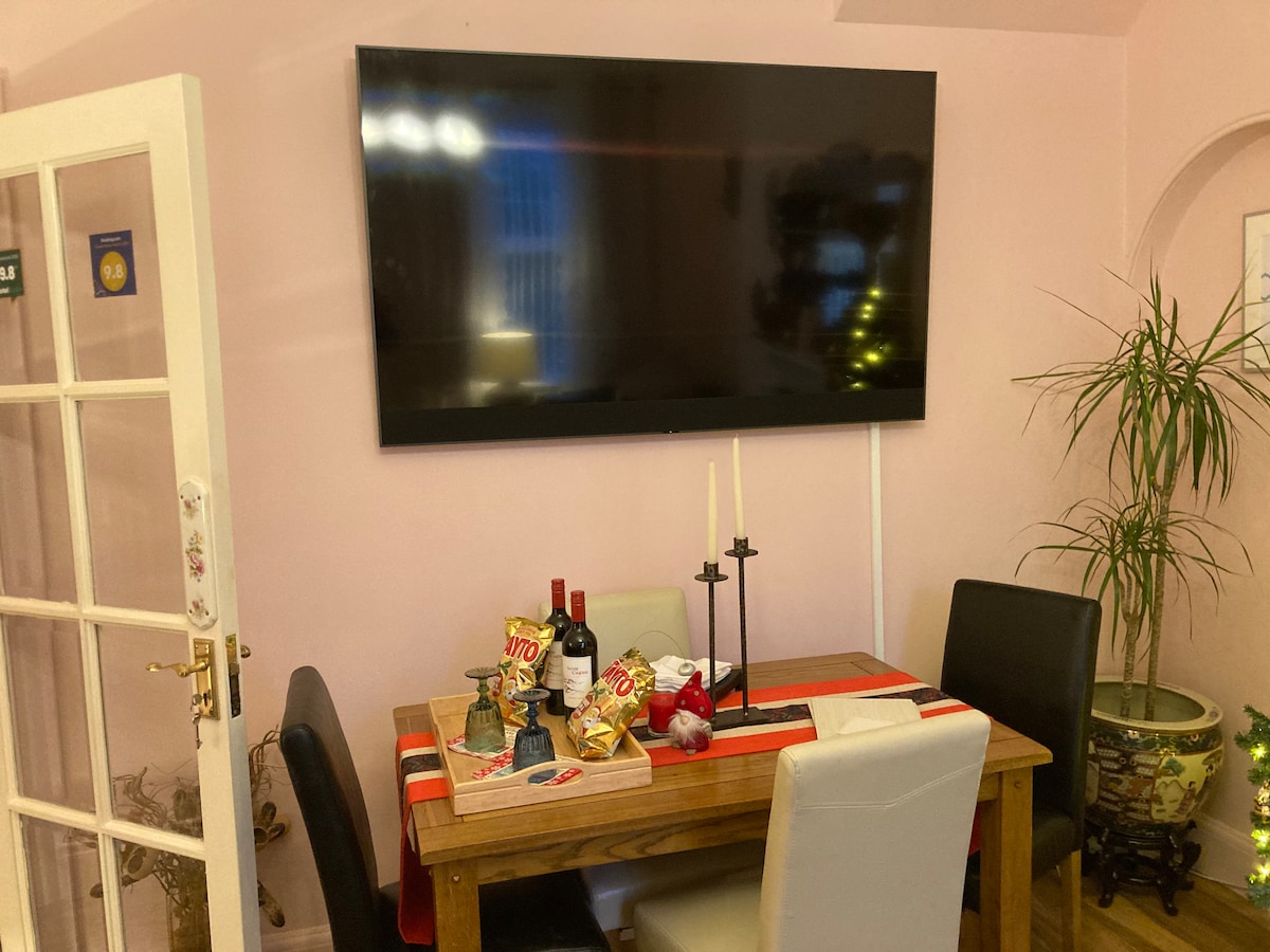 Lampiran ini adalah apartmen yang baru diubahsuai yang terletak di belakang rumah saya dengan pintu masuk kuncinya sendiri yang terletak di lokasi yang mudah 1 batu dari pusat bandar Bangor. The Annex ialah apartmen bilik tidur double yang segar dengan katil kerusi tarik keluar. Ia boleh memuatkan 3 orang dengan sangat selesa jadi sesuai untuk keluarga yang mempunyai 1 kanak-kanak atau 2-3 orang dewasa. Ruang tamu dilengkapi dengan televisyen LED yang dipasang di dinding, api dapur elektrik dengan meja dan kerusi. Tuala bersih, linen dan pengering rambut juga disediakan.