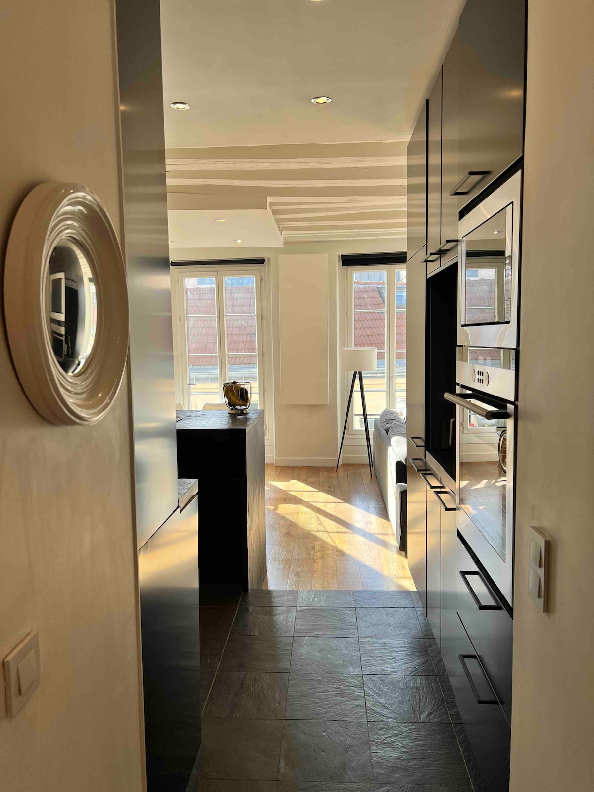Selamat datang ke studio 32 m² kami yang diubahsuai sepenuhnya di Rue Jean Beausire, di tengah-tengah daerah Marais yang bersejarah. Terokai lorong-lorong yang indah, butik berjenama dan kafe yang meriah di depan pintu anda. Pengalaman tulen di Paris yang bersejarah menanti anda.