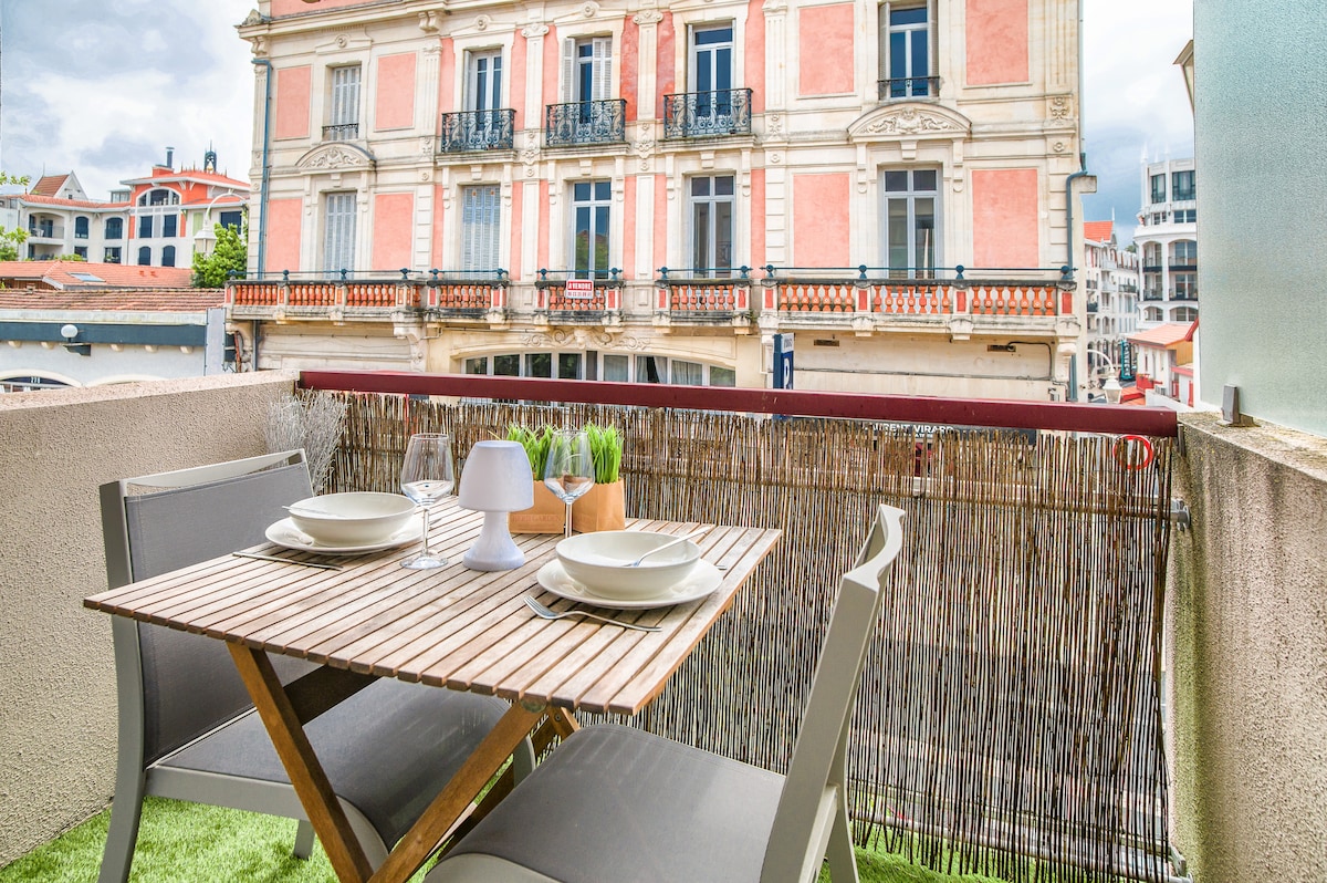 Apartment with Balcony & Parking – Arcachon City Center Enjoy a stay in the heart of Arcachon (Ville d’Été) in this cozy apartment featuring a balcony and private parking available (+€10/night). Located directly opposite the main beach, it’s the perfect package for a couple looking for comfort and a fully walkable stay.