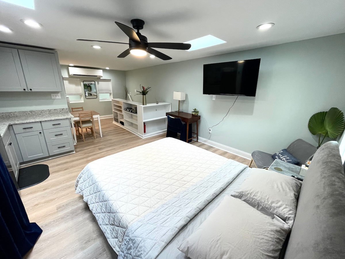 Nikmati kemewahan, privasi dan ketenangan di apartmen studio kami yang baru dibina. Terokai kesempurnaan: dengan pintu masuk persendirian, cahaya yang banyak, kemudahan premium, dan Wi-Fi yang pantas, anda mungkin tidak mahu keluar. Terletak di kejiranan yang tenang, flat persendirian ini adalah pied-à-terre yang sempurna dari mana anda boleh meneroka The District. Inside: no detail has been overlooked, and no expense spared, fully stocked with everything you need; and when you step out you are a short ride to the heart of the city.