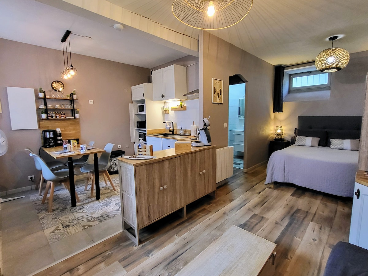 Studio berperabot 2 orang atau 3 orang untuk kanak-kanak ,kemungkinan untuk menambah katil payung untuk bayi tambahan. Di tingkat 2 dan terakhir, diubahsuai sepenuhnya di pusat bandar (50 m dari Dewan Perbandaran) . Sangat bagus dan cerah dengan pemandangan gunung , dengan taman komunal kecil dan barbeku. Sesuai untuk pelancong dan pengunjung . Ruang tamu dengan katil sofa (140cm) , TV, dapur lengkap, bilik mandi dengan donat dan ruang parking persendirian.