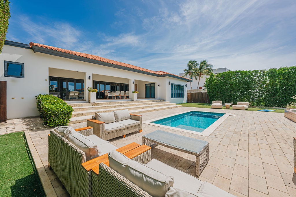 Vila 4 bilik tidur, 4 dan separuh bilik mandi yang menakjubkan ini menawarkan percutian Aruba yang terbaik, 5 minit berjalan kaki dari pantai pulau yang bersih. Bersantai dalam keselesaan yang luas sambil anda menyaksikan pemandangan matahari terbenam yang menakjubkan dan tidak terhalang dari kolam renang peribadi dan kawasan lounge anda. Setiap bilik tidur mempunyai bilik mandi en suite dan katil bersaiz king atau queen yang selesa, memastikan penginapan yang tenang untuk semua orang. ke beberapa kenangan di tempat yang unik dan mesra keluarga ini. Setiap bilik mempunyai akses luarannya sendiri.