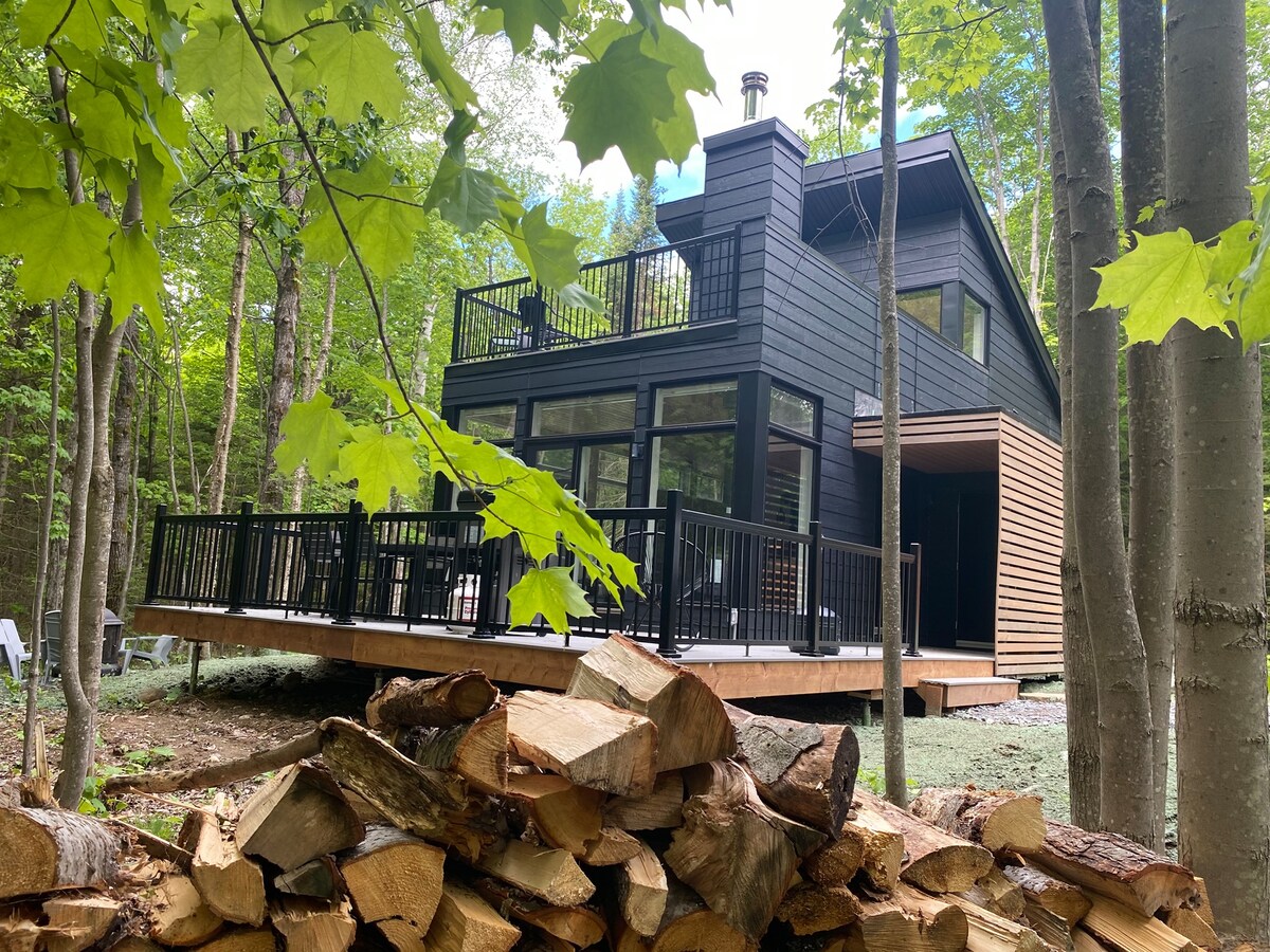 Chalet kecil yang menawan, dalam gaya Scandinavia dan halus, 960 sf dengan tingkap yang banyak, terletak di lot hutan intim di Kanata Tremblant Estate, 30 minit dari Mont-Tremblant di Laurentians, bersempadan dengan Outaouais. The mezzanine houses a beautiful large bedroom with King bed, wooden single-sloped ceiling and a pretty gallery for having a coffee or sunbathing. Dengan semua yang anda perlukan untuk melakukan kerja telefon dan/atau berseronok bersama pasangan, keluarga atau rakan-rakan di kawasan luar yang hebat!