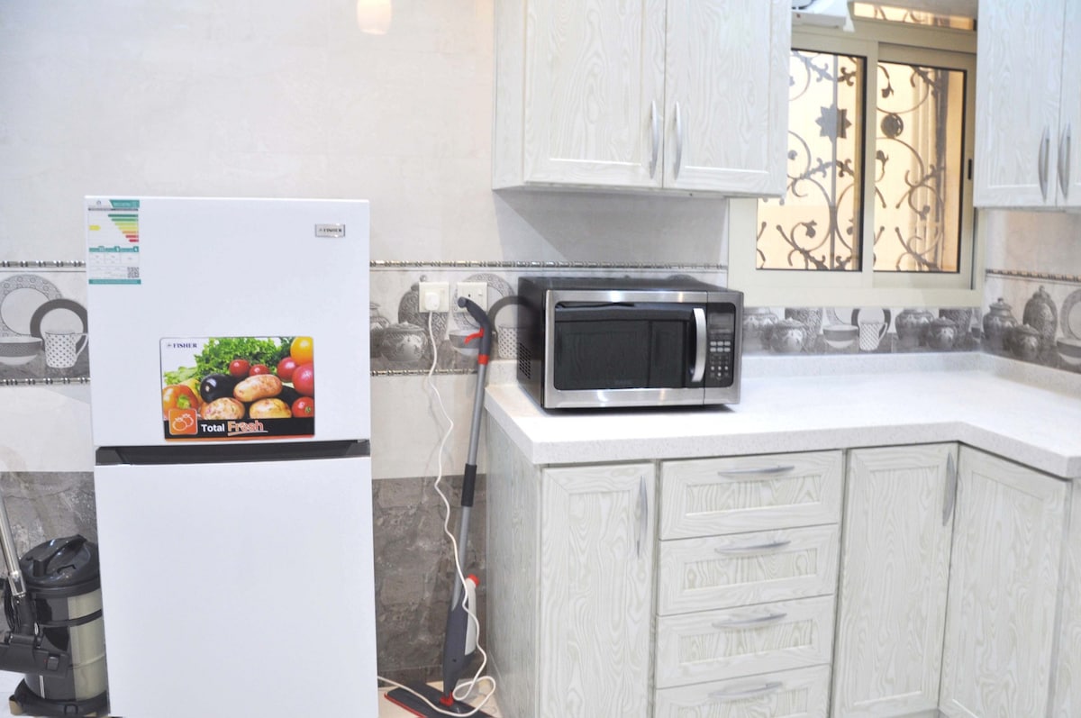 Apartmen yang elegan dan tenang, dilengkapi dengan rangkaian internet yang pantas, terdiri daripada ruang tamu, dua bilik tidur, dapur, dua bilik mandi yang luas, sudut kopi, peti sejuk, ketuhar gelombang mikro, ketuhar elektrik kecil dan peralatan memasak, dengan akses sendiri dan privasi lengkap. Ia mempunyai pintu masuk persendirian, berhampiran dengan semua perkhidmatan. 15 minit dari lapangan terbang, dari Asir Mall 5 minit, Hospital Bersalin 3 minit, ada perkhidmatan penghantaran dan dobi, dan penghantaran pasar raya. Dan menyimpan tilam tambahan jika bilangannya lebih daripada 4 orang dengan maksimum 6 orang. Apartmen ini berada di tingkat dua, dan tiada lif.