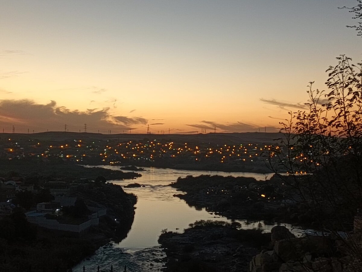Selamat datang ke NEFERTARI, tempat budaya dan kehidupan Nubia berpadu dengan lancar. Dibina dengan kasih sayang dan kerja keras, yang berjarak 10 minit dari pusat bandar. Apabila anda melangkah ke ruang kami, anda akan menemui suasana mesra yang mencerminkan kehangatan komuniti tempatan. Rumah ini mempunyai 2 bilik tidur, setiap satunya dilengkapi dengan 2 katil bujang yang dilengkapi dengan cadar double, memastikan tidur malam yang selesa. Seluruh ruang berhawa dingin, membolehkan anda melarikan diri daripada matahari Mesir dan menikmati percutian yang tenang.