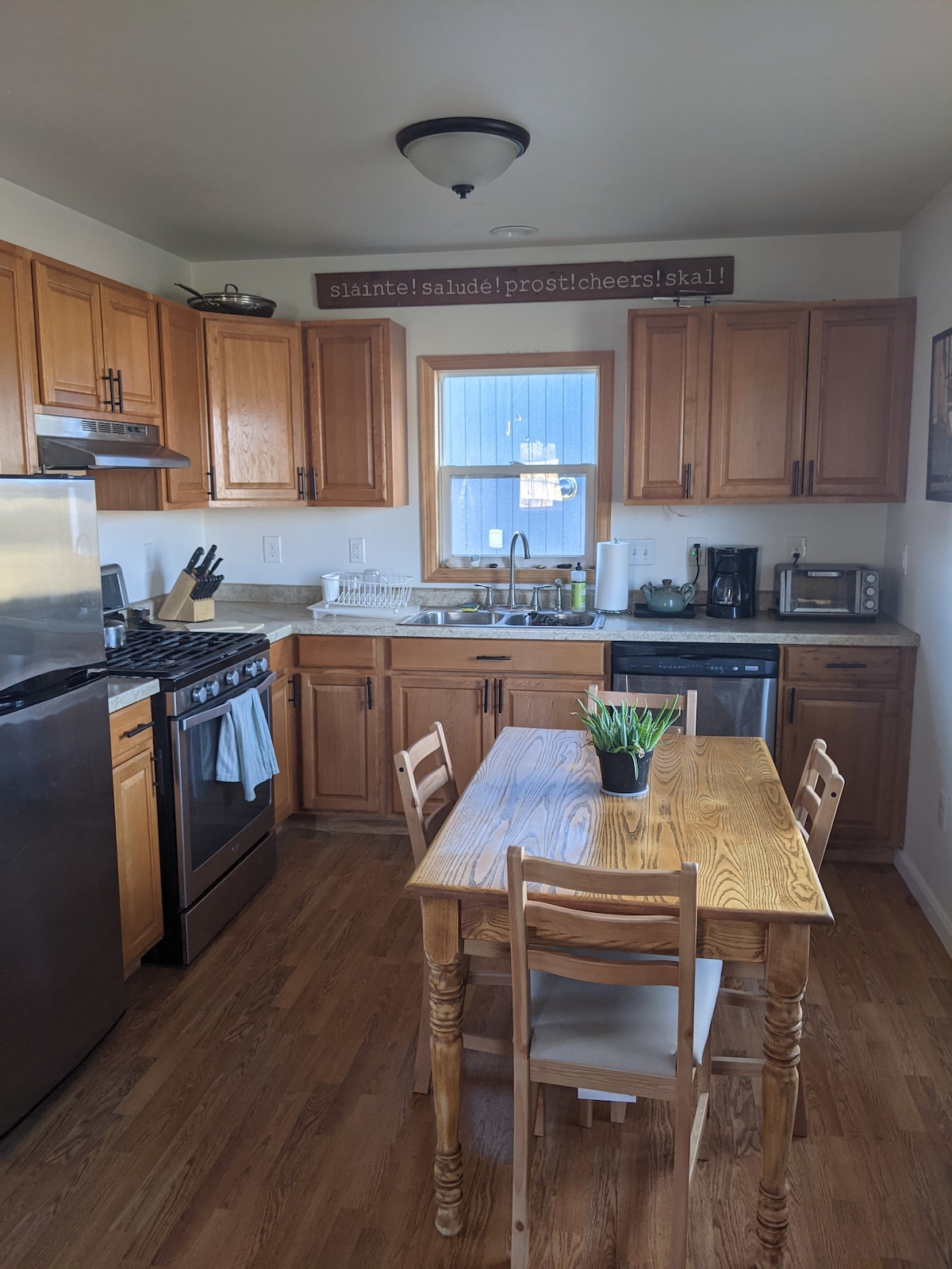 Apartmen tetamu satu bilik tidur yang selesa terletak di ladang 10 ekar kami yang luas dengan pemandangan dan privasi yang menakjubkan, namun hanya 5 minit dari bandar. Apt konsep terbuka menampilkan dapur penuh, ruang tamu dan ruang makan yang luas. Kedua-dua katil dan katil sofa mempunyai tilam memory foam. Kombo pancuran mandi/tab mandi praktikal untuk kanak-kanak. Mesin basuh dan pengering percuma. Dapur kayu yang selesa. Smart TV dan WiFi. Tilam queen udara tambahan juga ada. Mesra kanak-kanak dengan pack-n-play dan mainan. Tiada HAIWAN PELIHARAAN. Rumah tetamu yang sangat cerah dan bagus!