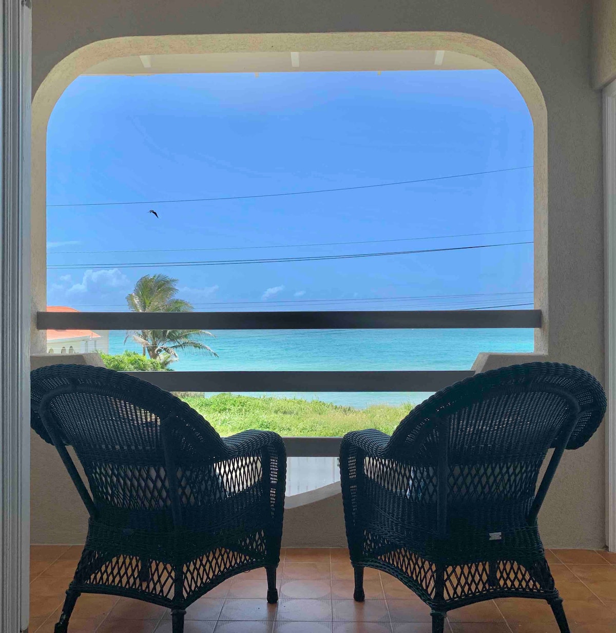 Welcome to Sea Dream House, located on Seaside Drive, this Atlantic Shores One Bedroom Apt. with its panoramic sea views is a wonderful place to come relax, cook a nice meal and watch the sunrise or sunset on your private ocean facing balcony. Rescue Beach is a small secluded beach within 5 mins walk, home to Surfers Bay Bistro for cocktails and cliffside dining. 20 minutes drive to US, Canadian & British embassies. Outfitted with a work station and high speed internet connection.