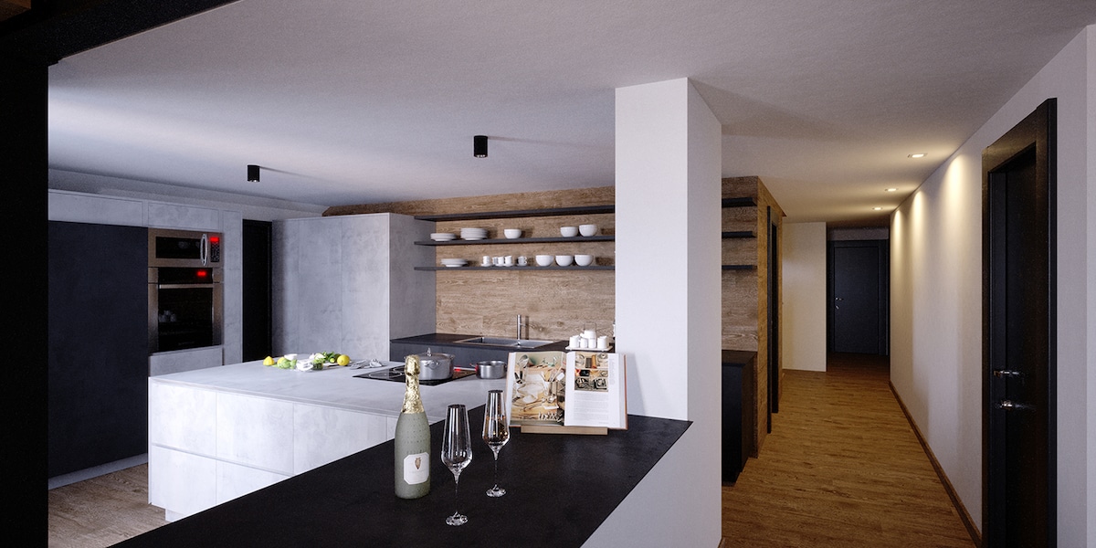 Apartmen besar moden di kawasan pergunungan dengan pemandangan yang menakjubkan