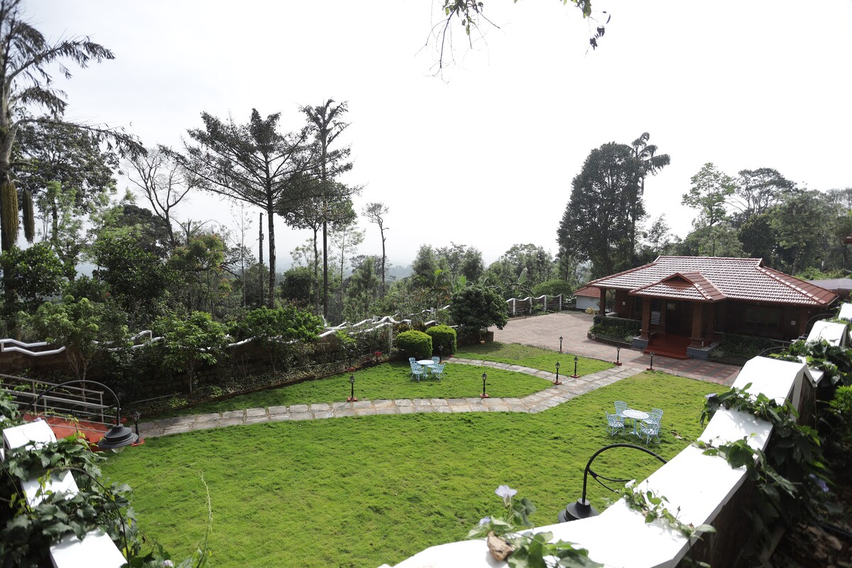 Rumah warisan kami yang dipulihkan dengan kasih sayang di pinggir Madikeri, terletak di hutan hijau seluas dua belas ekar yang terpencil dan menghadap pemandangan bukit dan lembah yang menakjubkan tanpa gangguan. Bilik tidur, tempat duduk & taman yang menakjubkan menyajikan panorama ajaib kawasan bukit & lembah yang tiada tandingan. PENTING Kami memberikan seluruh banglo kepada HANYA satu kumpulan pada satu-satu masa.