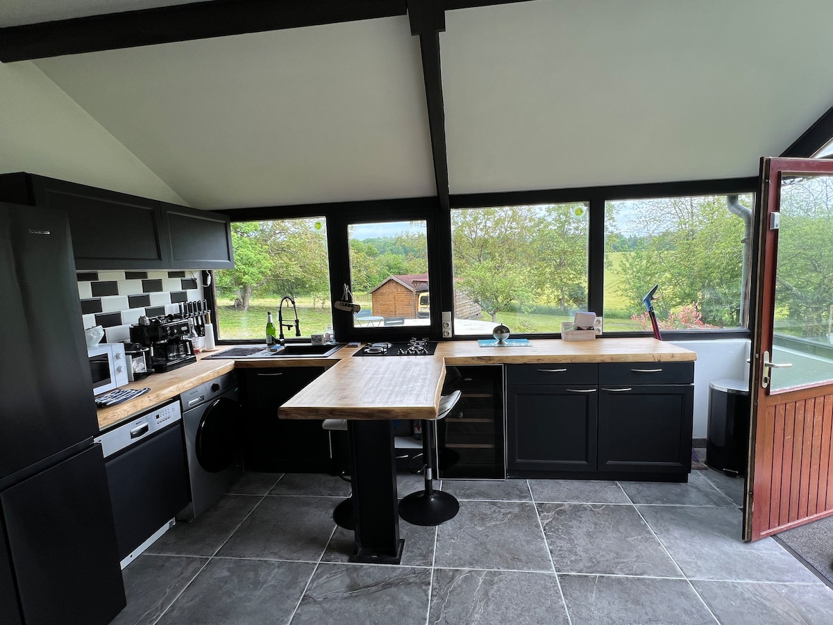 studio 25 m2 yang menawan lengkap dan baharu, bebas, dengan halaman yang luas dan selamat. Dapur kecil yang lengkap Bilik air dan tandas persendirian Linen dan tuala disediakan Akses mudah 2 km dari pintu keluar lebuh raya A28 Halaman kenderaan. peralatan tempat tidur baru dan selesa Televisyen, WiFi, pendingin hawa Sarapan atas tempahan 10 euro/orang Tiada yuran pembersihan