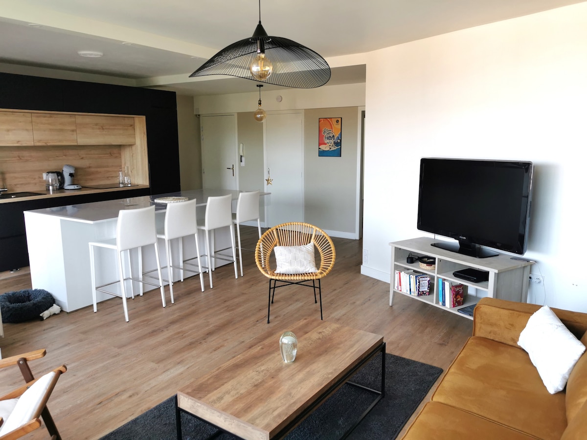 Superbe appartement de 80 m2, au centre du remblai des Sables d'Olonne. Cet appartement comprend une cuisine tout équipée avec lave vaisselle, salon/salle a manger, 2 chambres, salle de bain et WC + balcon de 8m2 avec vue sur l'océan. Équipé également d’un lave linge et d’un sèche linge. Garage privé et fermé a disposition.,logement pour 4 /5 personnes maximum , draps et serviettes (30€pour 2 lits +10€ pour lit supplémentaire 2 lits en 160 Lit en 90 Forfait ménage : 50€