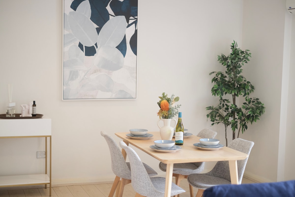 ** Had ketinggian garaj ialah 2.2 meter** **Mulai 16 Januari 2026, kami telah menaik taraf perkhidmatan pembersihan kami untuk memastikan standard pembersihan yang lebih tinggi untuk tetamu kami.** Selamat datang ke apartmen kami di Taman Olimpik Sydney! Menetap di apartmen 2 bilik tidur, 2 bilik mandi yang direka dengan teliti dan baru dibina ini dengan tempat letak kereta percuma di lokasi. Sama ada anda menghadiri acara, meneroka alam semula jadi, atau sekadar bersantai, ruang ini direka untuk menawarkan keselesaan, kemudahan dan sentuhan keanggunan.