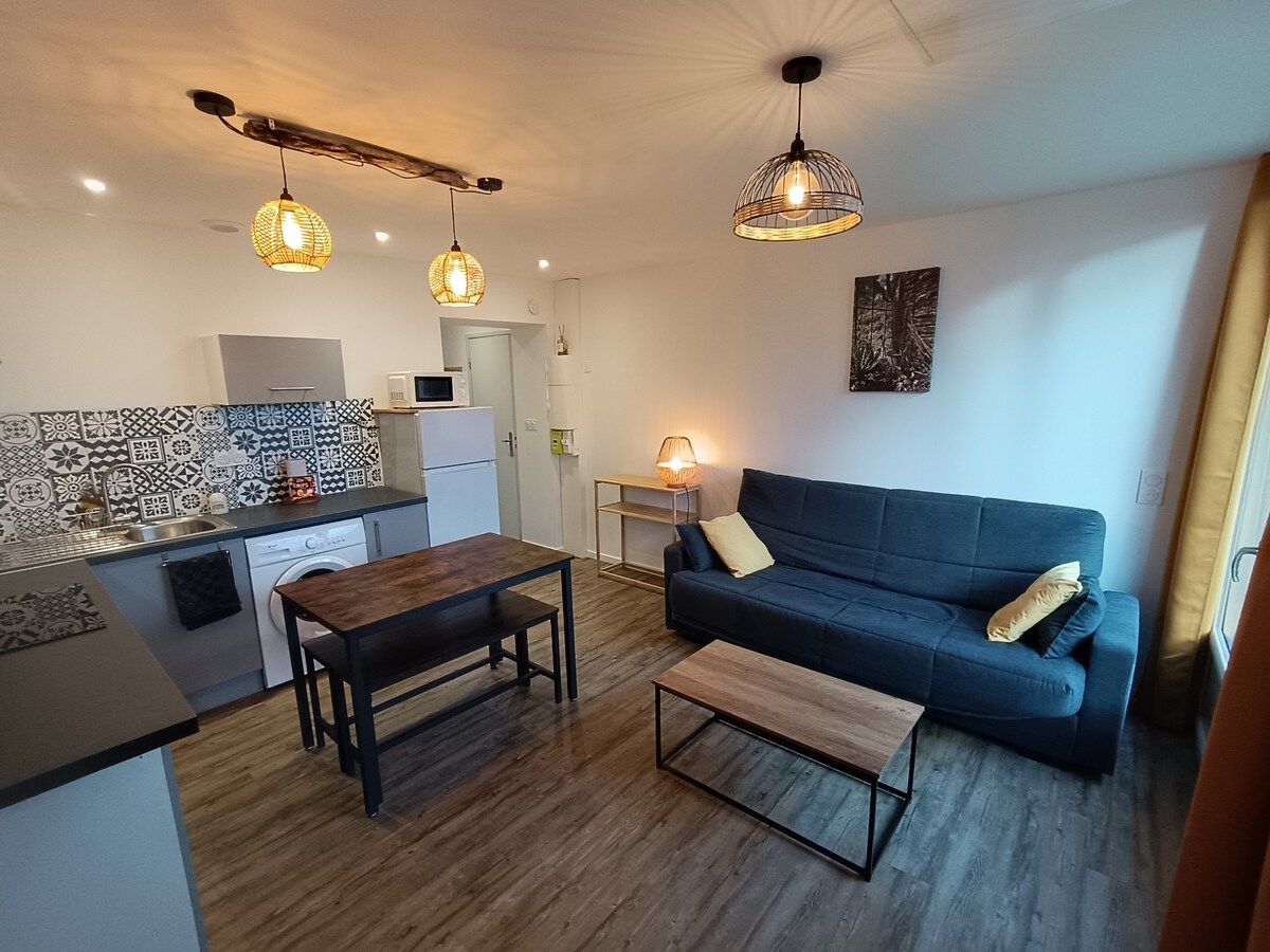 Apartmen dengan satu bilik tidur, selesa dengan pemandangan Pyrenees yang cantik, terletak di Tarbes (berhampiran pusat bandar, Haras de Tarbes...) Diubahsuai sepenuhnya, ia menawarkan suasana yang menenangkan dan santai, sesuai untuk berehat selepas seharian meneroka atau bekerja. Banyak tempat percuma di kaki apartmen. Pintu masuk serba lengkap dengan kotak kunci. Linen dan tuala termasuk dalam harga. Wi-Fi. —> terletak di tingkat dua tanpa lif