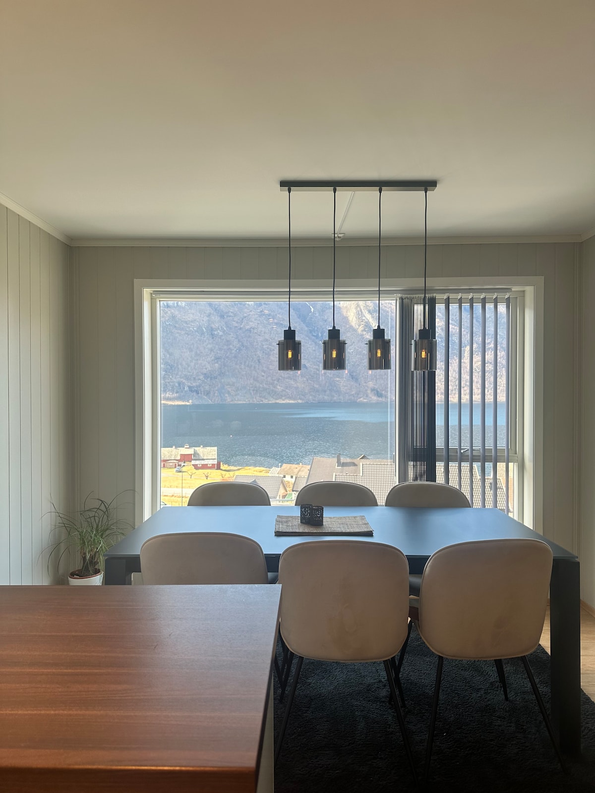 Apartmen yang bersih dan berpusat di tepi fjord. Berhampiran dengan pantai awam. 5 minit berjalan kaki ke kedai, pub dan perhentian bas. Dua bilik tidur dan ruang tamu yang luas dengan dapur terbuka. Bilik air besar dan ada mesin basuh. Apartent ini terletak di tingkat satu. Keluarga ini tinggal di tingkat dua.