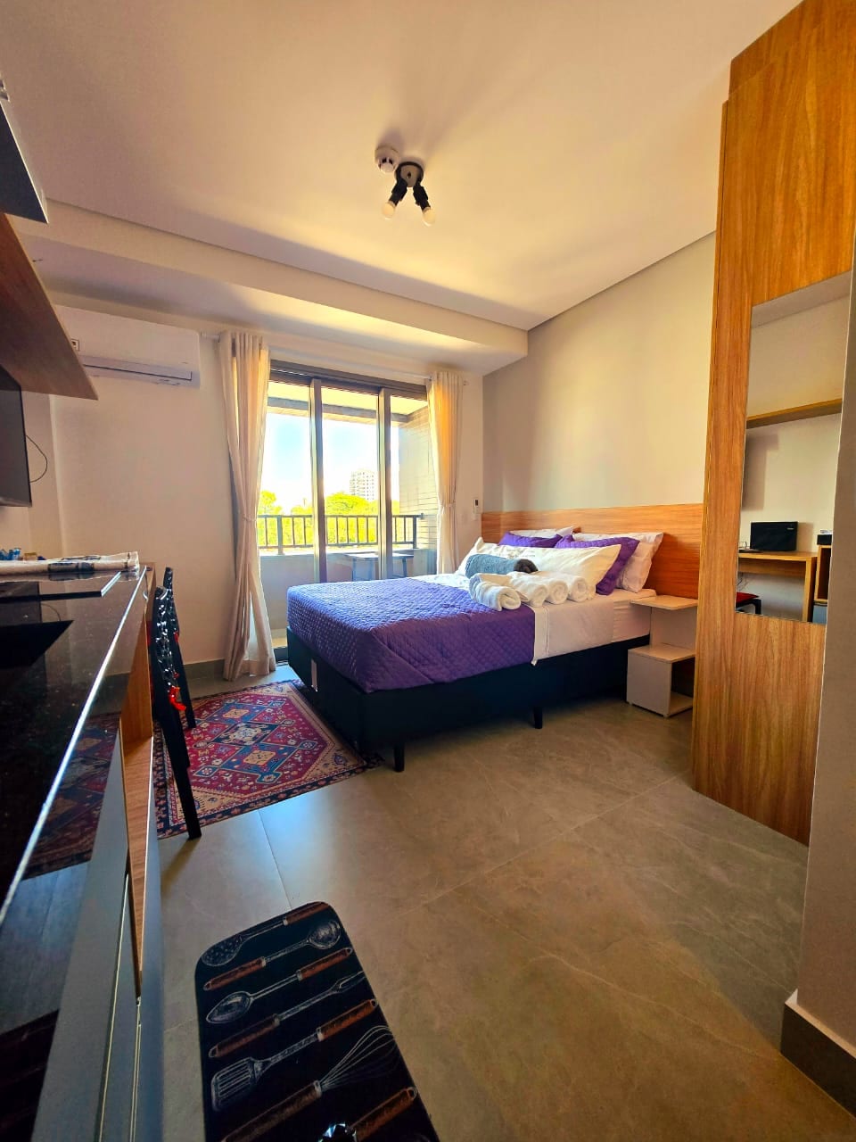 Studio yang dilengkapi dengan pemandangan (23m2 - tingkat 18). Apto bersebelahan dengan Stesen Metro Brooklin, dan 12 minit dengan kereta ke Lapangan Terbang Congonhas. . >> Berhampiran penginapan: . Hípica Paulista . Clínica Einstein . Konsulat Amerika >> Pusat membeli-belah berdekatan: Morumbi Mall . D&D Membeli-belah . Shopping Ibirapuera . Shopping JK Iguatemi >> Anda akan mempunyai di kondominium: Meja depan 24/7; . Gimnasium; . Dobi OMO; . Kerja bersama