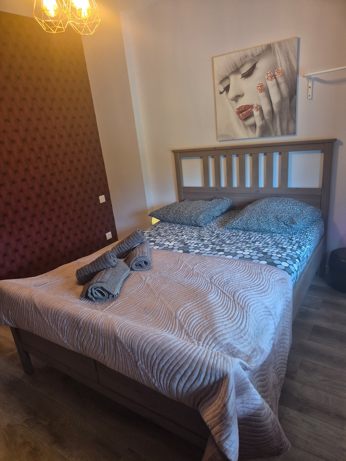 Loteng di pusat bandar Rennes. Terletak di tengah-tengah bandar, semuanya boleh dilakukan dengan berjalan kaki! 2 minit dari kedai-kedai artisan di Rue Saint-Hélier, 3 minit dari stesen kereta api, 5 minit dari Les Halles, bar dan restoran dari Rennes. Loteng berperabot cantik, ruang tamu separuh tingkat yang besar dengan ketinggian siling yang cantik. Dilengkapi dapur dengan peralatan baru. Bilik mandi besar dengan bilik mandi. 2 bilik tidur luas dengan katil double, satu dengan meja.