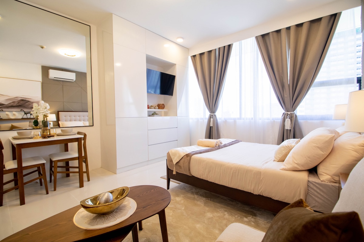 Kondominium studio yang selesa & berperabot berhampiran hab komersial & perniagaan utama Cebu - IT Park & Ayala Center! Jadi sama ada anda melawat Cebu untuk perniagaan atau percutian, anda pasti boleh diakses & berada dalam jangkauan destinasi anda. Rasa seperti di rumah sendiri dan nikmati pemandangan matahari terbit, bukit dan laluan air yang indah. Dan dengan internet gentian, sentiasa kekal berhubung sama ada untuk kerja atau Netflix. Kami ingin anda mengalami Cebu dan berasa selesa seperti di rumah sendiri.