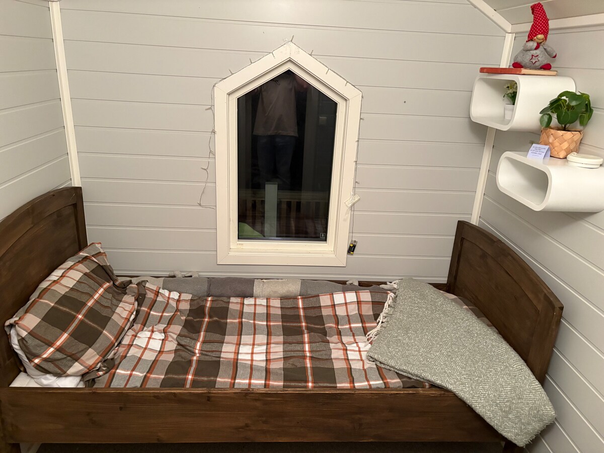 Selamat datang ke penginapan yang menawan dan unik di perbandaran Gjemnes. Sesuai untuk mereka yang mencari ketenangan, kesederhanaan, mendaki dan pengalaman alam semula jadi. Kabin mini yang selesa dengan balkoni dan pemandangan laut, hutan dan gunung. Kemudahan seperti tandas boleh digunakan di rumah utama sebelah. Di sini anda akan menemui banyak pengalaman semula jadi berhampiran yang peluang mendaki yang hebat, memancing, jarak pendek ke mutiara di Møre dan Romsdal. Jika mahu, rebusan hangat dan lazat yang diperbuat daripada daging rusa tempatan boleh dihidangkan. Ini ditawarkan sebagai tambahan.