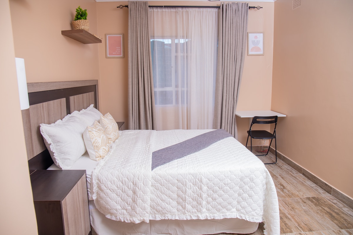 Selamat datang ke apartmen tiga bilik tidur kami yang luas dan selesa yang terletak di kawasan Highlands Harare yang tenang. Sesuai untuk keluarga, kumpulan, atau pengembara perniagaan. Apartmen ini menawarkan gabungan kehidupan moden dan keselesaan rumah. Bilik tidur utama mempunyai katil bersaiz king dan bilik mandi persendirian untuk kemudahan tambahan. Bilik tidur kedua mempunyai katil bersaiz queen yang selesa, manakala bilik tidur ketiga disediakan untuk kanak-kanak, dua katil berkembar.