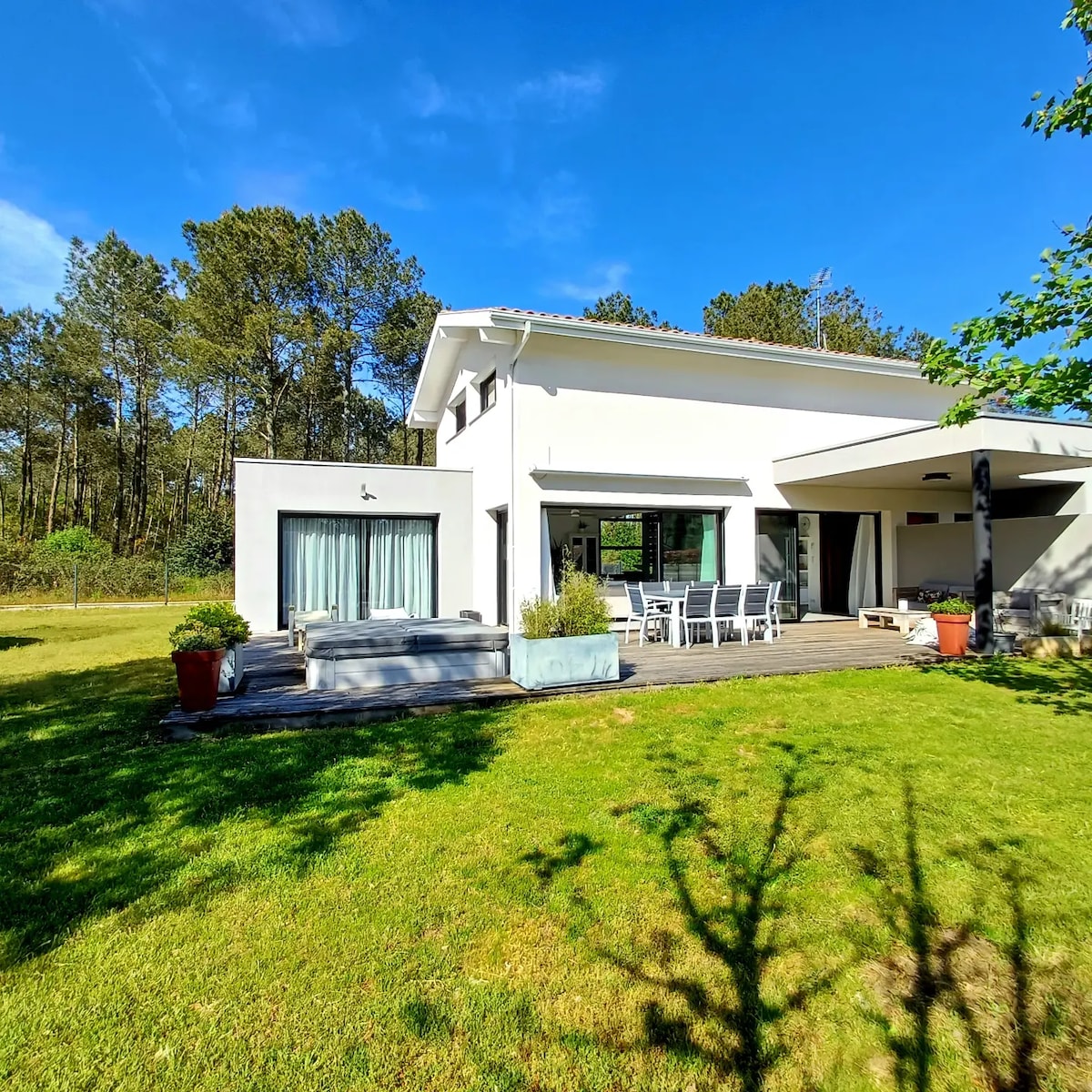 - Vila Luas 1-14 Orang - 7 Bilik Tidur, 4 Bilik Mandi +4 WC - Taman Rimbun untuk Aktiviti Luar dan Momen Tenang - 4 Minit berjalan kaki ke Azur Lake untuk mandi Sailing&Canoeing - 8 Minit dari 4 pantai indah yang berbeza, untuk Berjemur dan Meluncur - 10 minit ke padang Golf PGA seterusnya - Berhampiran Barangan Runcit Berkualiti Tinggi dan Tempat Makan Gourmet - 20 Minit ke Hossegor, dan 35 Minit ke Biarritz dan San Sebastián's Urban Delights