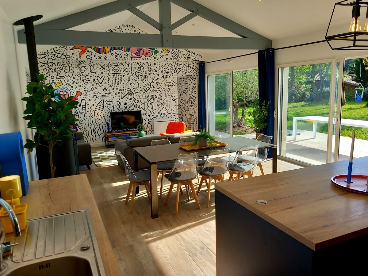 Datang dan berehat di rumah yang tenang dan bergaya ini. Terletak 200 meter dan 3 minit berjalan kaki dari laut, anda akan dimenangi oleh teres hutan dan terbuai oleh kicauan burung! Anda akan mendapat manfaat daripada ruang letak kereta persendirian yang menjadikan hidup anda lebih mudah, serta kafe-restoran dan kedai runcit berhampiran untuk membeli-belah anda. Tiada yang lebih hebat daripada kopi pagi yang diambil di bukit pasir: jadi jangan teragak-agak, kami sedang menunggu anda!