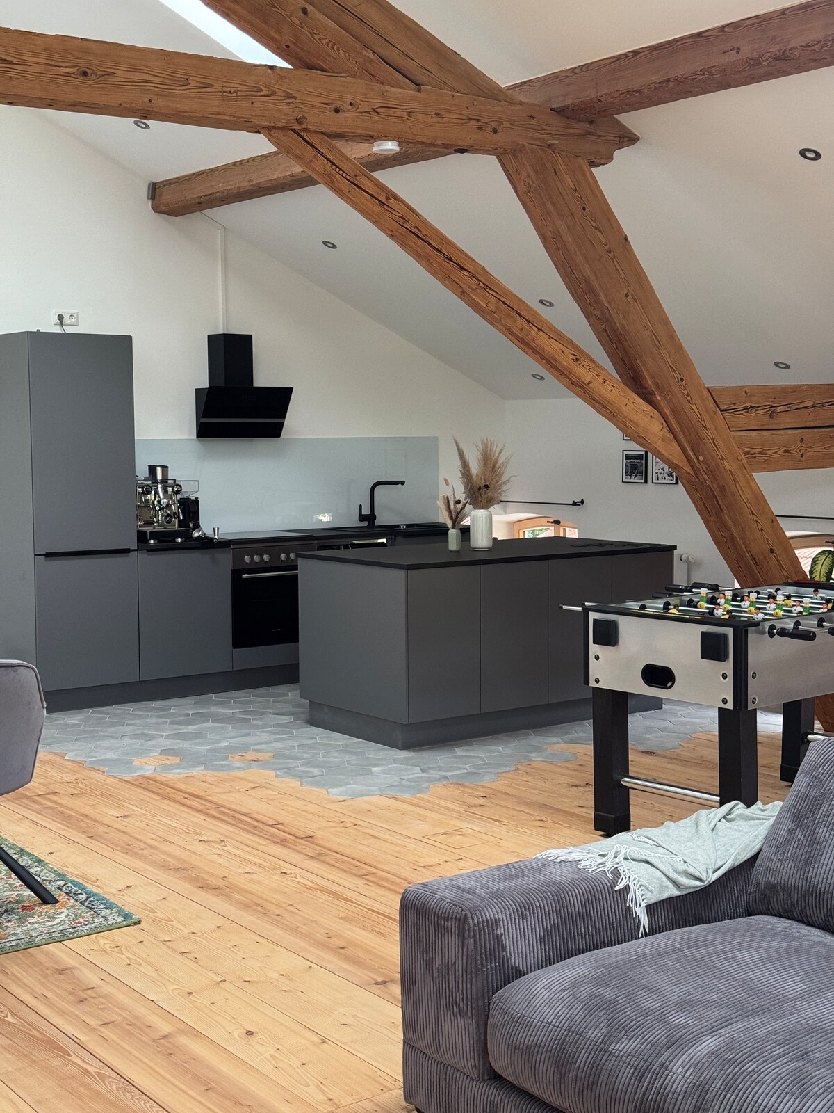 Selamat datang ke Falternhof yang bersejarah – Percutian anda dengan pesona sejarah & reka bentuk di kawasan sekitar Lake District Chiemgau. Sama ada pelancong aktif, pencinta desa, peminat golf atau pendaki puncak - alami loteng unik di salah satu bangunan halaman tertua Bavaria. Pada asalnya dibina pada tahun 1866 oleh pekerja tetamu Itali & kini diubahsuai oleh kami dalam lebih tiga tahun seni kraf yang penuh kasih sayang, kami telah mencipta tempat persembunyian bergaya yang menyatukan kemodenan dan sejarah.
