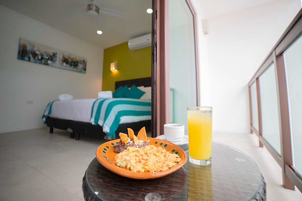 Jika anda mencari ruang yang selesa, bersih dan selamat untuk berehat selepas meneroka setiap sudut Bacalar, ini ialah tempat yang ideal untuk anda. ✨ Bilik keselesaan ✅ kami, yang terletak di tingkat bawah, sesuai untuk pengembara solo atau pasangan. 🛌 Ia menampilkan katil kelamin, bilik mandi peribadi dengan air panas, penyaman udara, WiFi berkelajuan tinggi, TV kabel, dan semua butiran yang anda perlukan untuk penginapan yang sempurna. 🍳🥞 Sarapan disediakan setiap hari dari 9:00 hingga 10:00 pagi. Kami adalah pilihan terbaik!