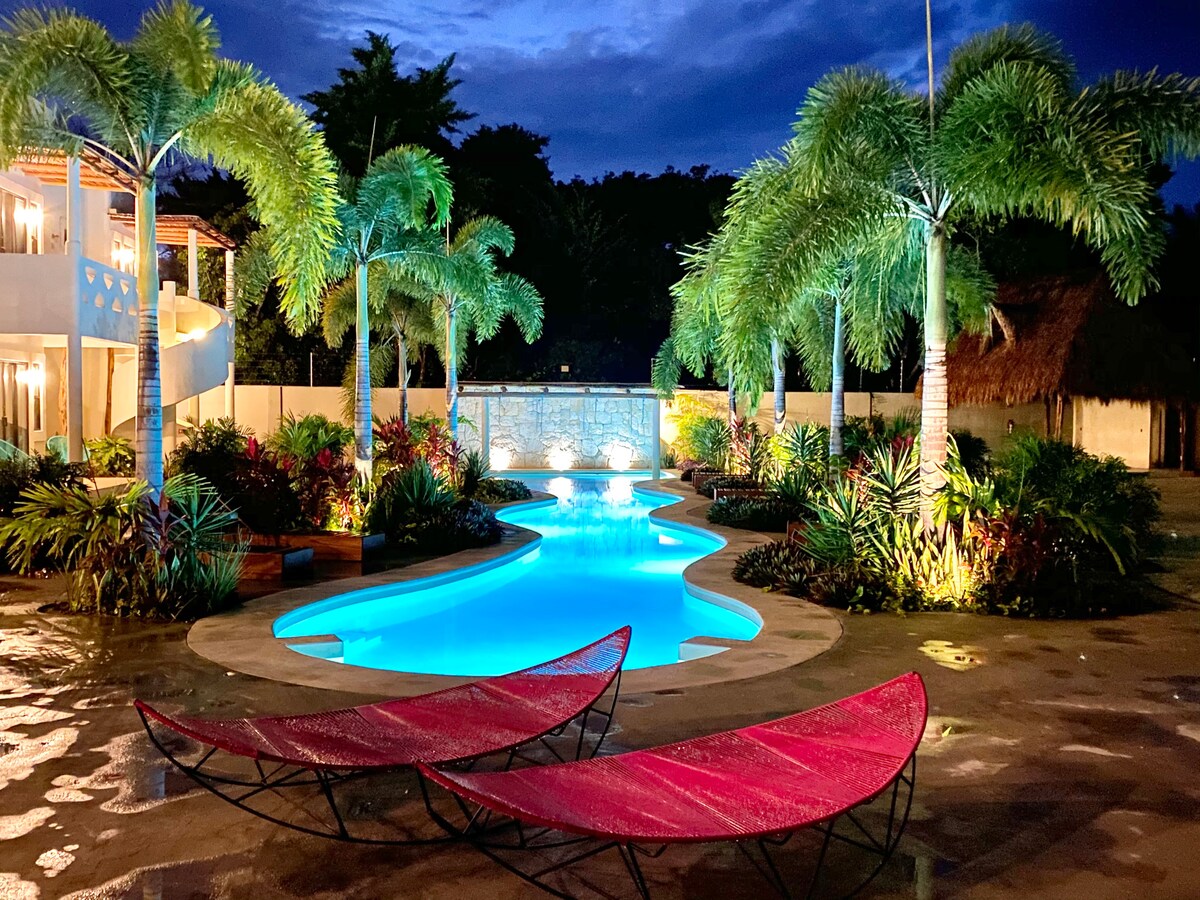 Eco Boutique Hotel, alami bilik kami dan jadilah sebahagian daripada keluarga kami. Reka bentuk bilik unik, "rumah kecil", katil di tapanco. Berenang dan berehat di kolam ekologi kami. Restoran Mexico yang lazat yang akan meniup fikiran anda. Perkhidmatan lawatan SUP Paddle untuk disewa. Lawatan belayar eko untuk disewa. Perkhidmatan basikal untuk disewa.