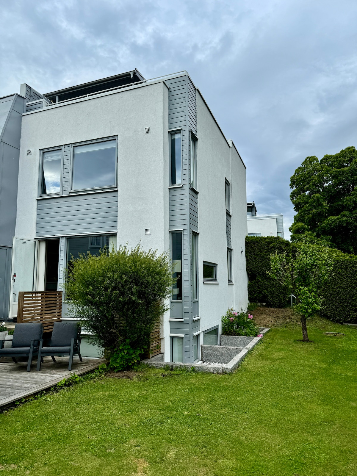 Rumah bandar yang cantik di Ullern dengan jarak yang singkat ke sambungan awam seperti trem, bas dan kereta api (Skøyen/Lysaker). Penginapan ini terletak di jalan yang tenang dengan taman yang terlindung dan keadaan matahari yang baik. Ruang ini termasuk: Tingkat 1: Koridor, ruang tamu dengan dapur, tandas. Tingkat 2: 2 bilik tidur (satu dengan kemungkinan katil kelamin), koridor dan bilik mandi dengan pancuran mandi/tab mandi dan mesin basuh. Tingkat 3: Ruang tamu loteng dengan katil siang (ini boleh digunakan sebagai katil) dan dapur. Teres bumbung besar. Terdapat dua ruang garaj untuk kediaman ini. Diubahsuai pada tahun 2021.