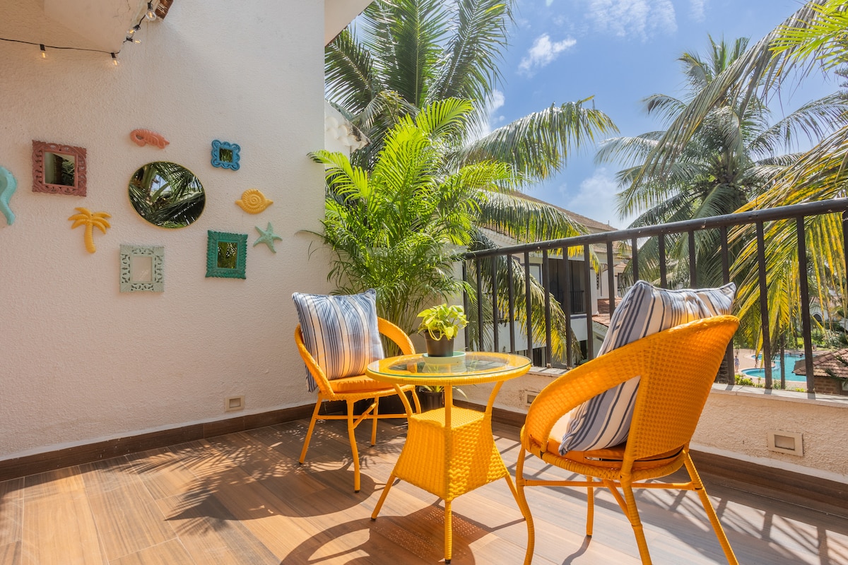 Pemandangan Kolam Renang 2BHK | 10 min ke pantai | Jaccuzzi