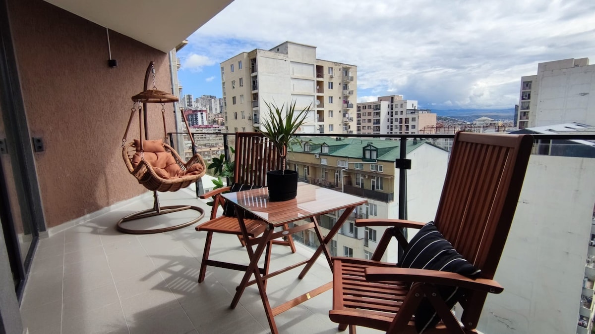 Nikmati keselesaan moden di pusat bandar Tbilisi, di mana pemandangan bandar dan reka bentuk bergaya bersatu. Ruang yang bersih ini menampilkan bilik tidur yang luas, bilik mandi moden yang anggun, dan teres persendirian dengan pemandangan bandar yang menakjubkan — tempat yang sempurna untuk menikmati kopi pagi anda atau bersantai pada waktu petang. Sesuai untuk pengembara solo, pasangan, atau tetamu perniagaan yang ingin mengalami Tbilisi dengan bergaya dan selesa. Nikmati gabungan sempurna antara kehidupan bandar dan kemewahan betul-betul di depan pintu anda!