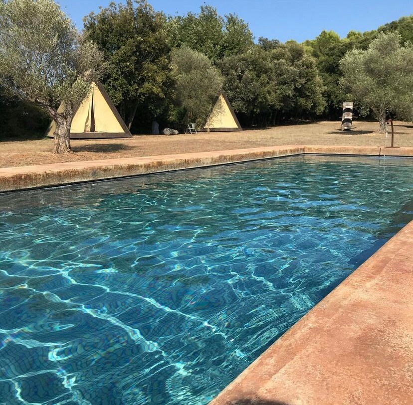 Perkhemahan mewah premium dengan kolam renang di pergunungan Girona