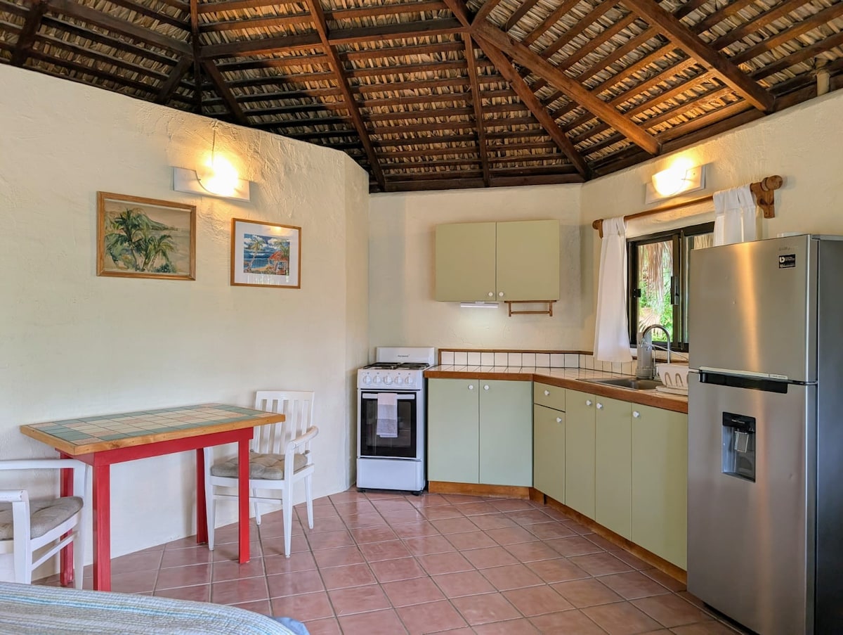 Studio kecil berkuasa solar di luar grid dengan bumbung jerami mempunyai internet Starlink, katil queen, dapur kecil, bilik mandi, buaian rajut dan patio teduhan palapa. Tempat letak kereta percuma adalah 2 blok kecil dari rumah. Kerusi pantai, payung, tuala dan kotak sejuk disediakan. Kedai menyelam, pantai berenang dan restoran terletak dalam jarak 5 minit berjalan kaki. Surf Hut dan Pelican Palace terletak di lot yang sama tetapi mempunyai akses bebas. Unit tidak disediakan untuk kanak-kanak di bawah 10 tahun.
