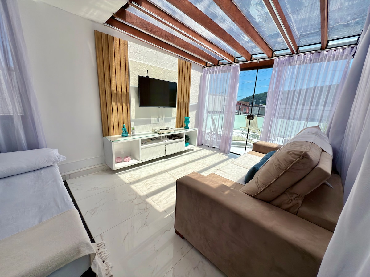 50m ² Rustic Sobrado, dengan 2 bilik tidur, ruang tamu,dapur dan garaj untuk 1 kereta Ia terletak 5 blok dari pantai kira-kira 800m dari pantai. Di tingkat satu terdapat bilik mandi dan dapur yang dilengkapi dengan semua peralatan dan ketuhar gelombang mikro. Di tingkat dua terdapat ruang tamu dengan TV pintar 40 inci dan Wi-Fi 100 Mbps, 2 bilik tidur, satu dengan katil double dan satu lagi dengan katil dua tingkat. Kami tidak menerima HAIWAN PELIHARAAN, tertakluk kepada denda PERHATIAN!! Ia mempunyai tangga yang curam, tidak digalakkan untuk orang tua dan kanak-kanak